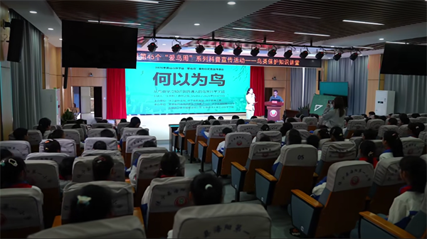 在随后开展的科普讲堂环节,老师围绕鸟类鉴别、生活习性、栖息地保护以及野生动物保护法律法规等内容进行了深入浅出的讲解,同学们认真聆听、踊跃互动。海阳一小四年级8班学生戴菲说道:“我知道鸟儿是人类的好朋友,我们要仔细地呵护它,守护它的家园,一起保护美丽的大自然。”