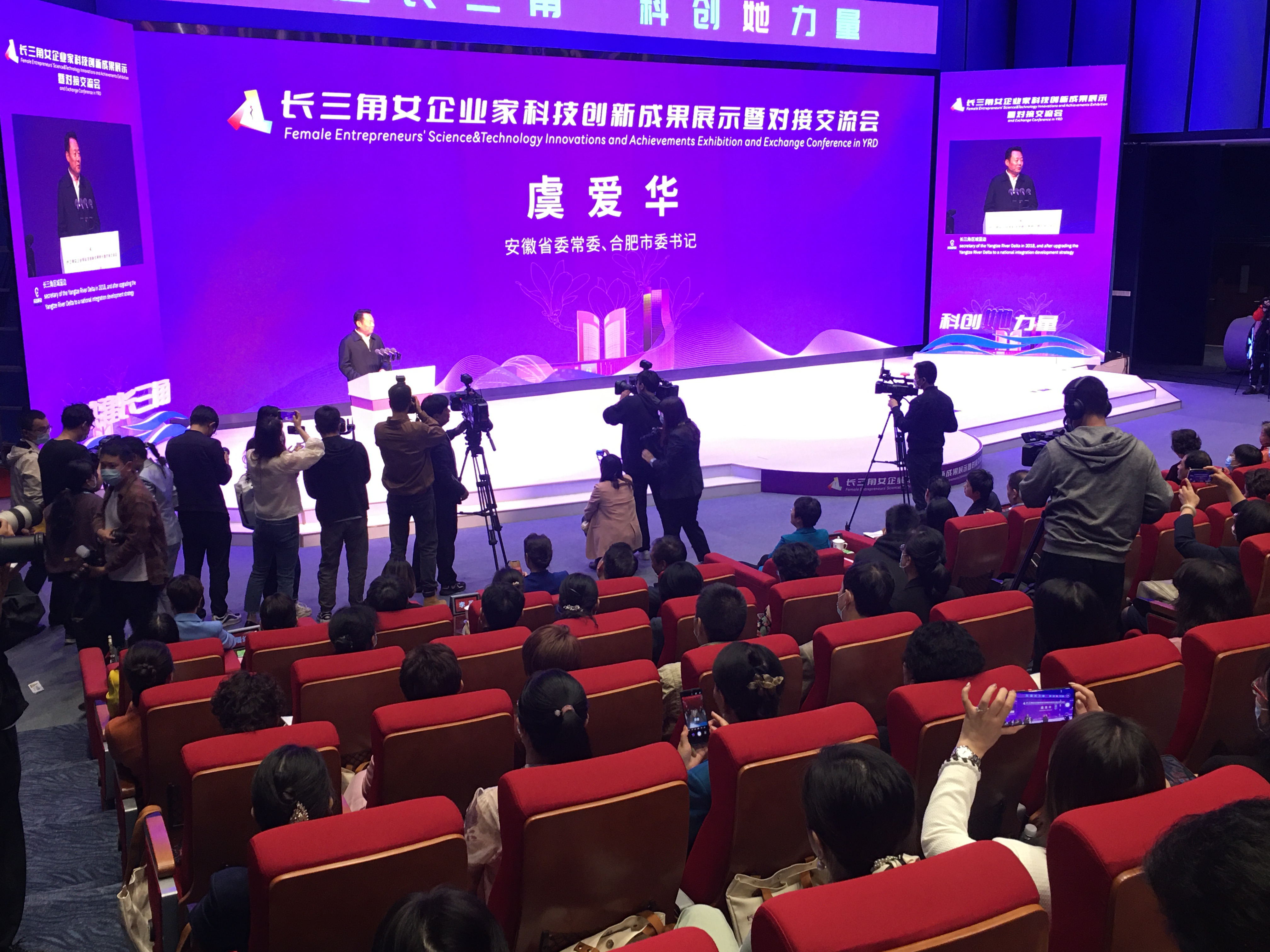 安徽省委常委、合肥市委书记虞爱华出席大会并致辞。虞爱华在致辞中说,广大女科技工作者、女企业家要大力弘扬科学家精神和企业家精神,主动作为,在推动长三角一体化发展和民族复兴大业的生动实践中书写出无愧于时代、无愧于人民的壮丽华章。“科里科气”的合肥正努力成为让女性大有所为、情有独钟的城市,希望更多的女企业家、女科技工作者来到合肥发展就业、指导帮助,合肥将为大家亮灯三千花开满城。
