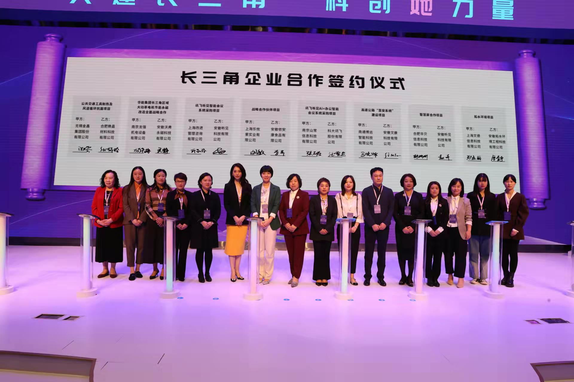 江海奔涌,巾帼当立潮头。长三角一体化发展从国家战略决策到层层推进,长三角女企业家的融入意识与行动快速敏捷,紧抓机遇,勇于创新。参会女企业家们纷纷表示通过参与本次活动,长三角“朋友圈”更大了,交流联系更紧密了,发展前景更广阔了。此次活动作为又一新起点,必将推动沪苏浙皖的女企业家们同携手、共发展、再创辉煌,推进长三角一体化科技创新发展。为进一步促进长三角区域女性科创企业的交流合作,活动前期,筹备组进行了深入细致的联系沟通,积极为三省一市在科技项目对接转化以及新产品研发等方面有合作意愿的女性科创企业牵线搭桥,并成功促成了25家单位和企业达成合作意向,签约项目共15个,签约总投资达36亿元,涉及交通、能源、环境、智能语音等多个领域。项目投资规模大、科技含量高、市场前景好,打造了合作样本,起到了较强的引领带动作用。
