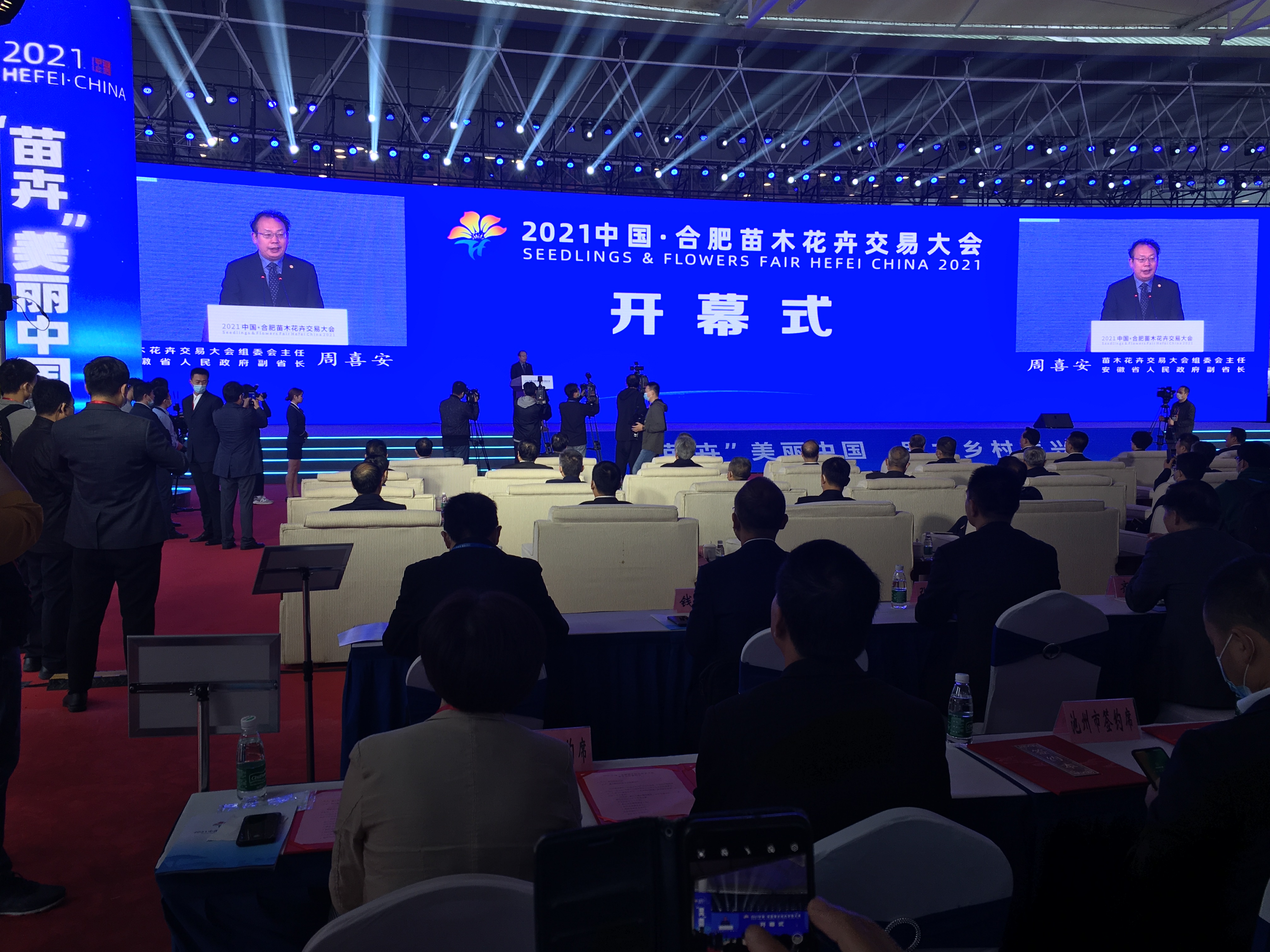 “苗卉”美丽中国,助力乡村振兴。10月15日上午,2021中国·合肥苗木花卉交易大会在中国中部花木城(肥西)隆重开幕。安徽省委副书记程丽华,全国政协常委、国家林草局副局长刘东生,安徽省委常委、合肥市委书记虞爱华和安徽省人大常委会副主任沈强,安徽省人民政府副省长周喜安,安徽省政协副主席肖超英出席开幕式并巡展。国家林草局有关司局负责人,上海、江苏、浙江等省(市、自治区)林业主管部门负责人,有关行业协会负责人,安徽省直有关单位、各省辖市及林业主管部门负责人和参展企业代表300余人参加了开幕式。