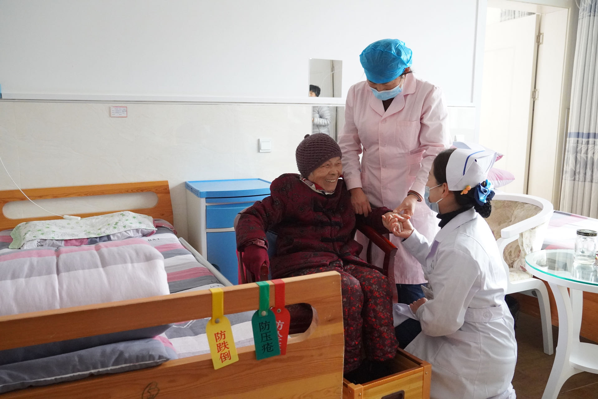 “在我们这边住院的老人都不用离开这,除非做手术,或者病情治疗需要大型设备时,才需要转离这里。”养护中心负责人余秋菊介绍,该中心以东至县中医院医疗延伸点的形式设立了老年病区,纳入医院本部医疗护理服务管理体系,建立了绿色通道,直接将病历信息转至本部医疗系统,实现小病不出院。