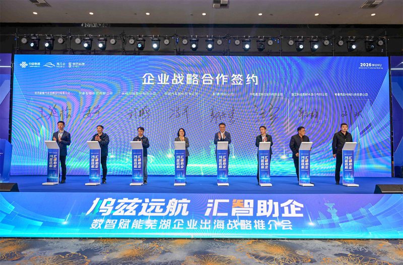 本次推介会上,“鸠兹出海战略联盟”正式启动。芜湖市贸促会、芜湖联通、辛巴科技、海行云、聚驰信息、象维汀创、浪潮集团、金蝶软件等8家单位共同签约,整合各方资源,深化产业协同,为芜湖企业出海搭建更广阔的合作平台。