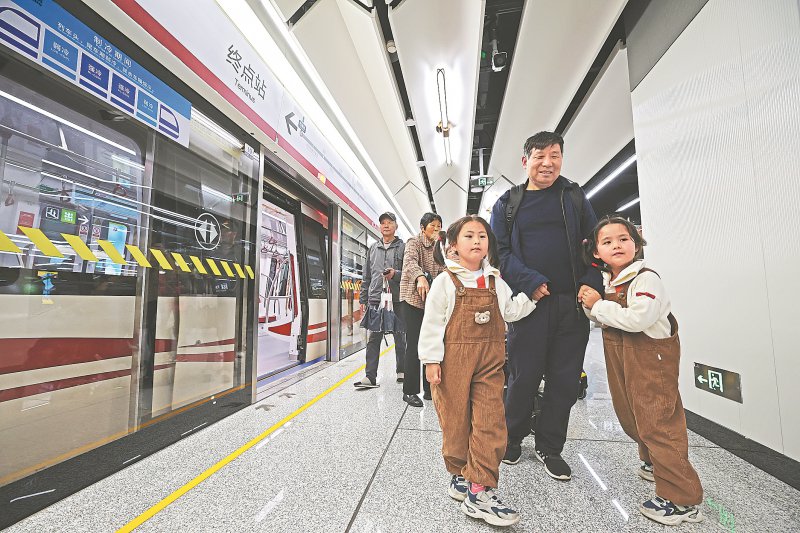 4月22日,马鞍山市民乘坐新开通的宁马市域(郊)铁路,体验往返两市的便捷出行。视觉中国供图