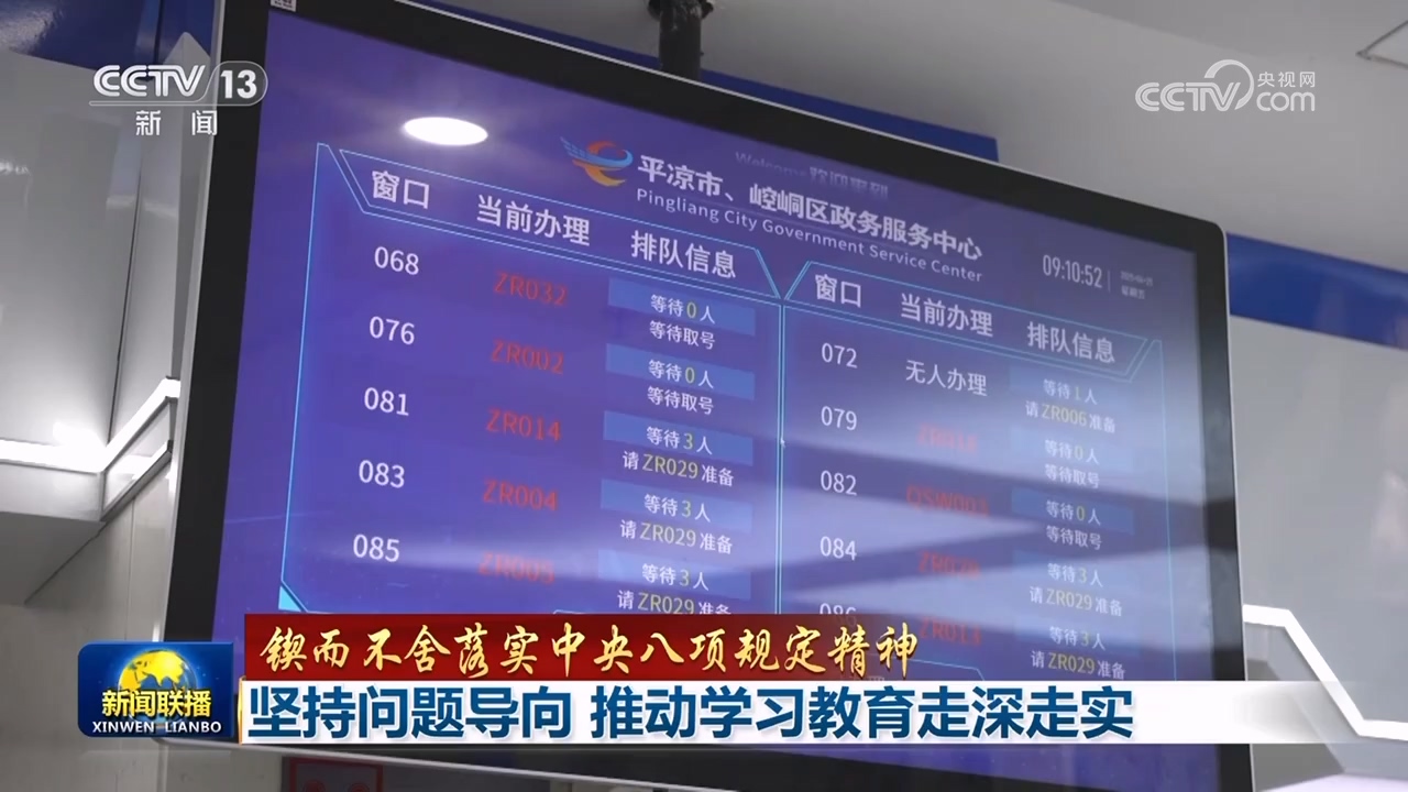 央视网消息(新闻联播):在深入贯彻中央八项规定精神学习教育中,重庆渝中、甘肃平凉坚持问题导向,结合工作实际,动真碰硬解决问题。