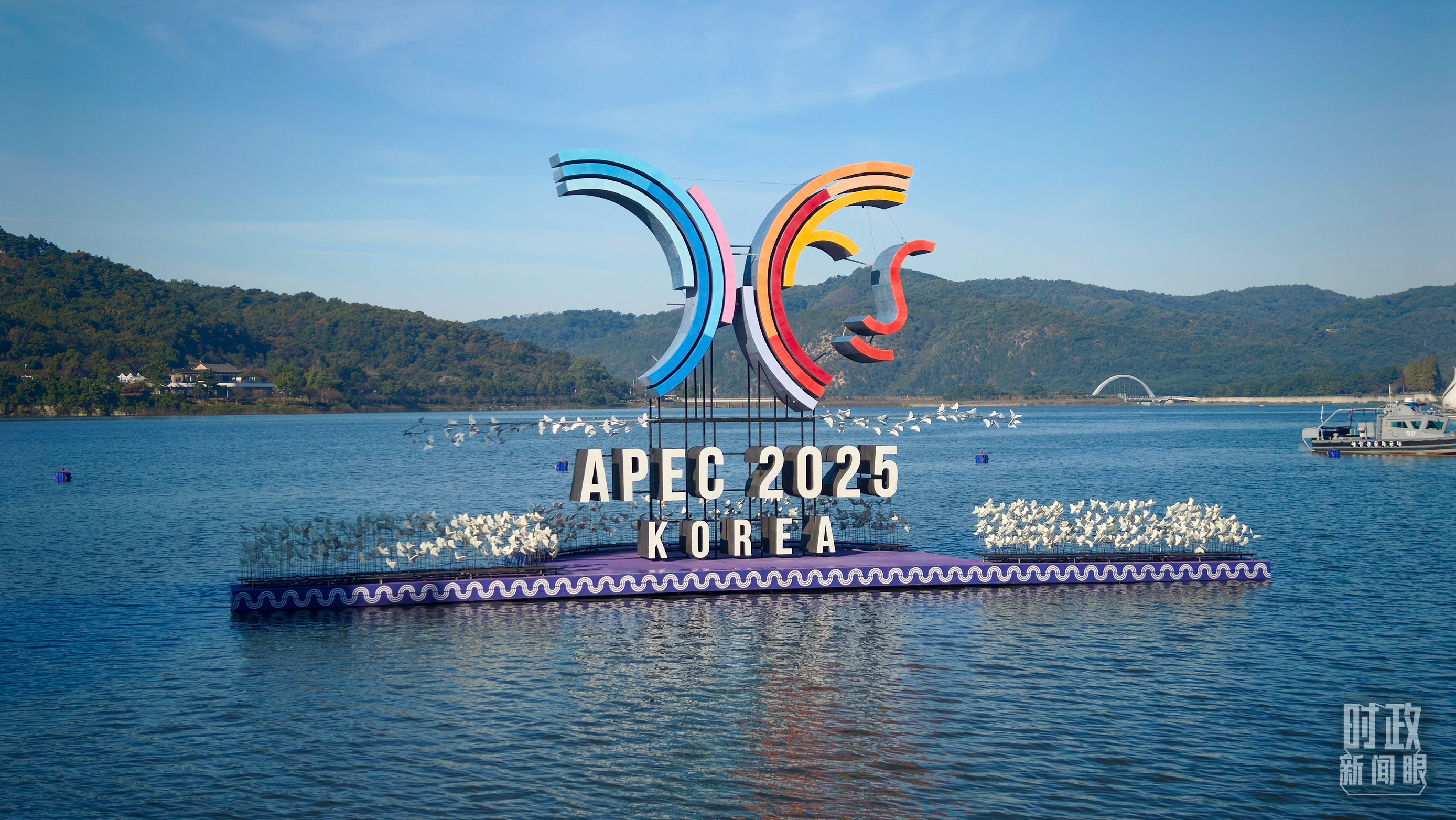 △庆州普门湖心的APEC会徽。(总台央视记者鄂介甫拍摄)