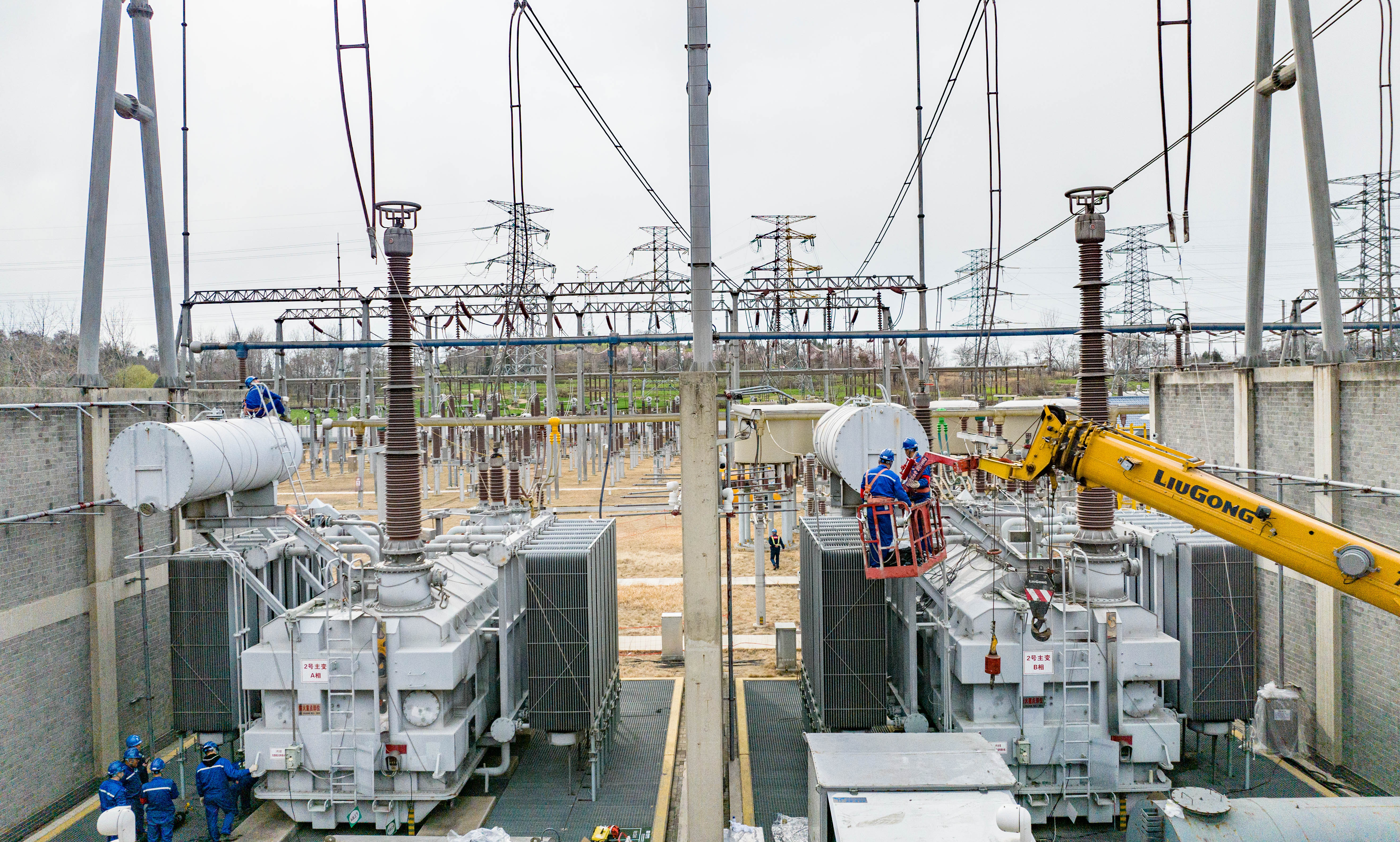 淮北供电公司为了保障供电设施安全畅通,防止即将到来的夏季生产、生活用电高峰时期供电线路出现不畅,淮北供电公司组织技术人员提前对辖区内重点供电设备进行维护和检修。图为3月18日,淮北供电公司职工正在对500千伏濉溪变电站的主变等设备开展综合检修。本次检修旨在消除家族性缺陷,提高500千伏濉溪变电站的供电可靠性,可以大大提高向华东电网输送电能的能力。(王磊 赵创业)
