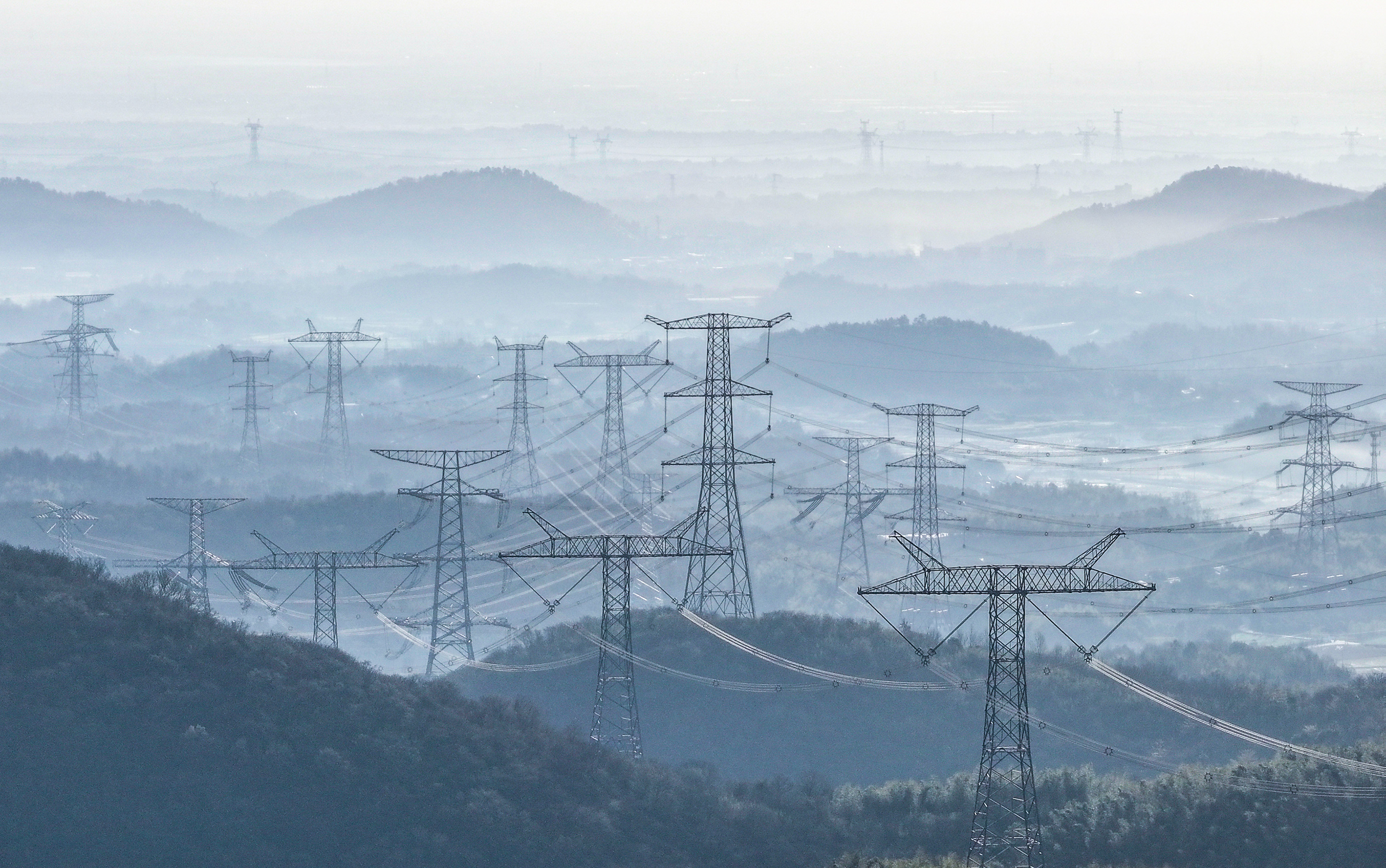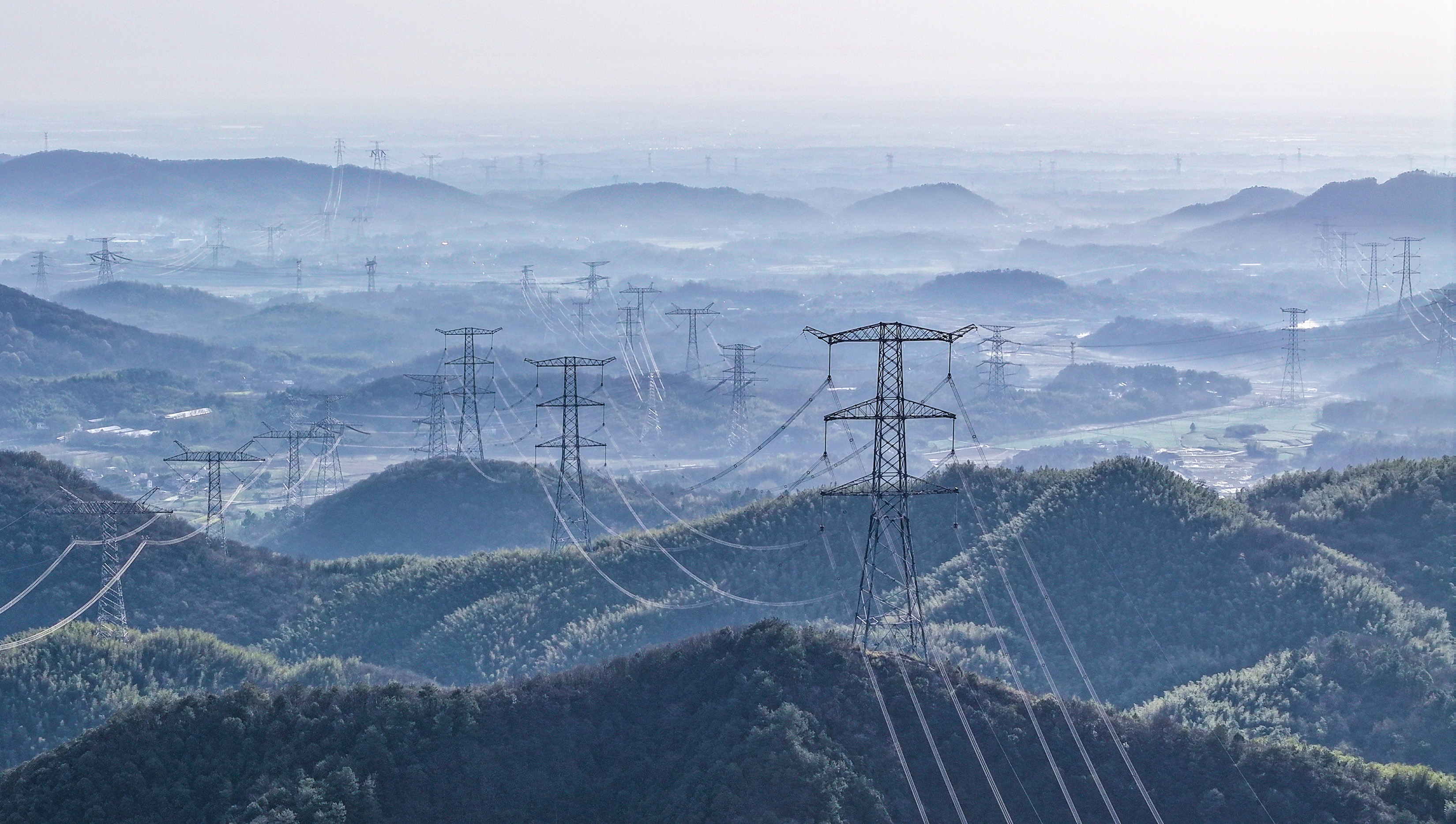 3月21日,芜湖市繁昌区孙村镇境内“西电东送”特高压线路在晨雾中忽隐忽现,宛若仙境。