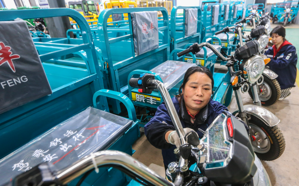 3月27日,位于当涂县太白镇工业集中区的安徽皖丰车业有限公司生产车间内,工人们在紧锣密鼓赶制新能源电动保洁车订单。作为工信部公布的安徽唯一一家具有一级摩托车生产资质的企业,该公司瞄准市场需求,开发生产出10多款新能源电动车,广泛用于环卫、园林等行业,畅销市场。今年以来,当涂县工业大镇太白镇加快培育高新技术企业,在一批细分行业领域,培育领军企业和行业“隐形冠军”,助力经济高质量发展。 王文生 摄