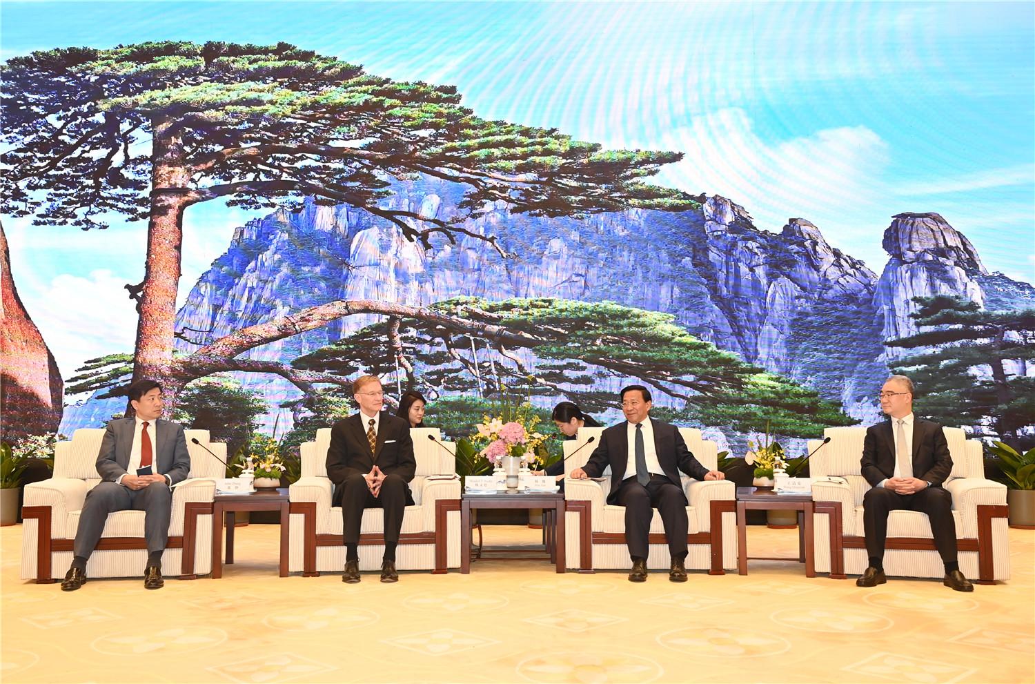 3月28日下午,省委书记韩俊、省长王清宪在合肥与康宁公司董事会主席兼首席执行官魏文德一行举行工作会谈。本报记者 杨 竹 摄