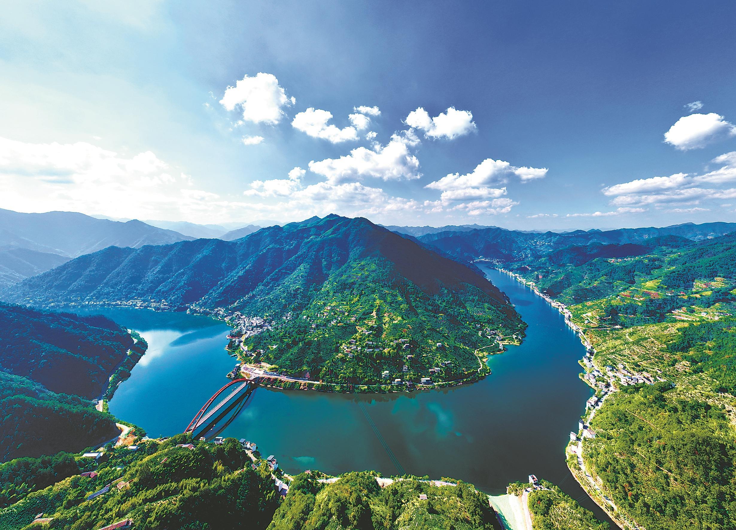 总投资约28亿元的新安江航道综合整治提升工程包括航道整治、新建航运梯级枢纽、航道疏浚、建设生态护坡等。图为新安江歙县段。本报记者 潘 成 摄