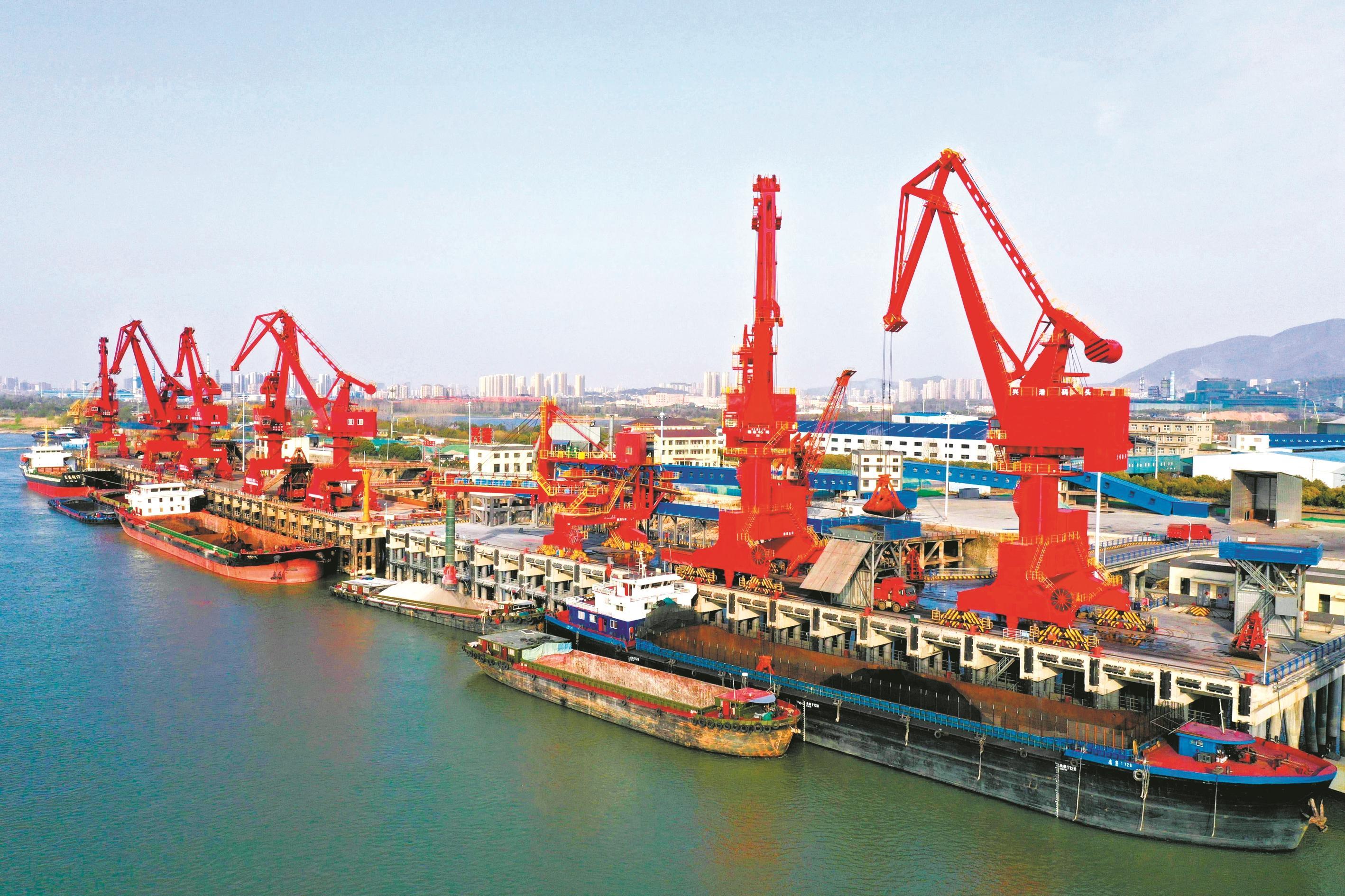 铜陵港发挥通江达海优势,发展铁水、公水等联运模式,水运经济跑出“加速度”。 本报通讯员 过仕宁 摄