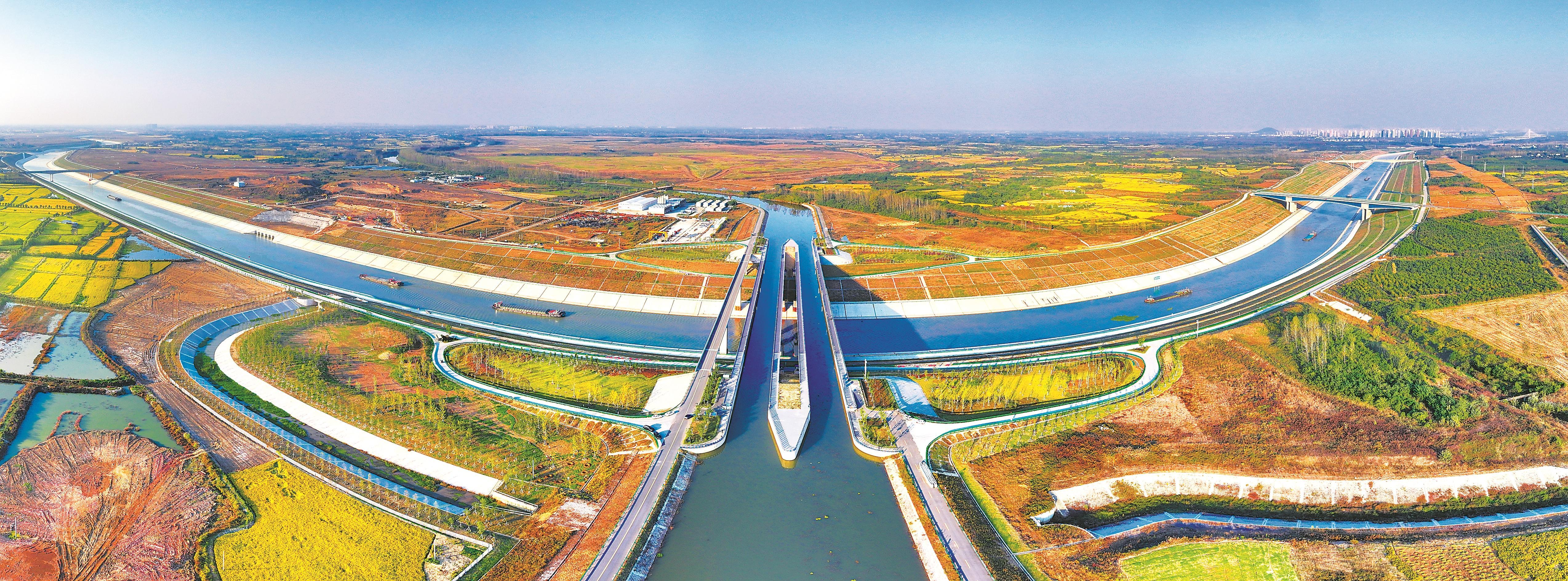 图为通航后的引江济淮淠河渡槽航拍。本报通讯员 王世保 摄