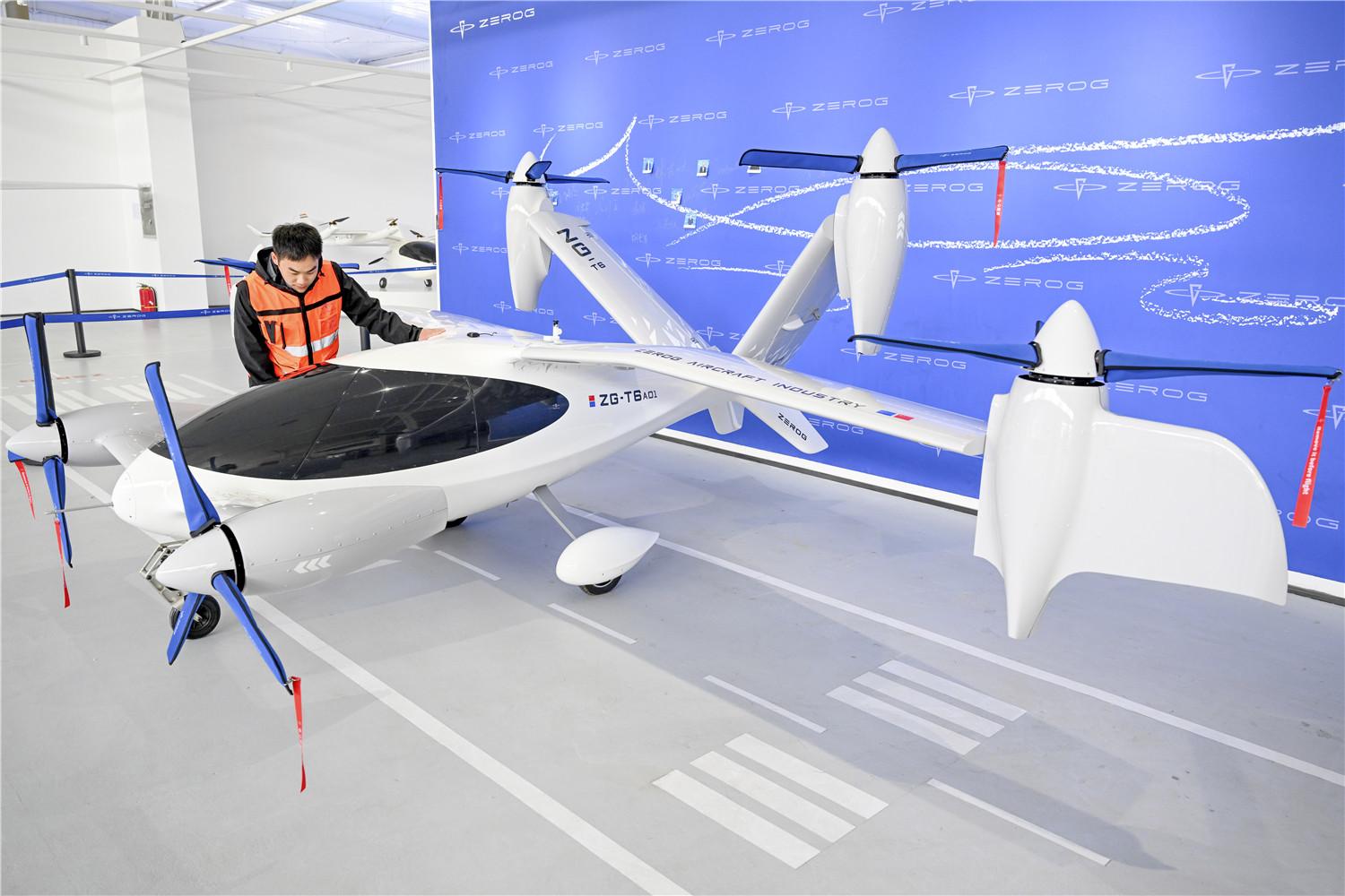 3月30日,在位于合肥高新区的安徽省内唯一一家载人电动垂直起降飞行器的生产制造基地,零重力飞机工业(合肥)有限公司的工作人员正在调试新能源飞行器。