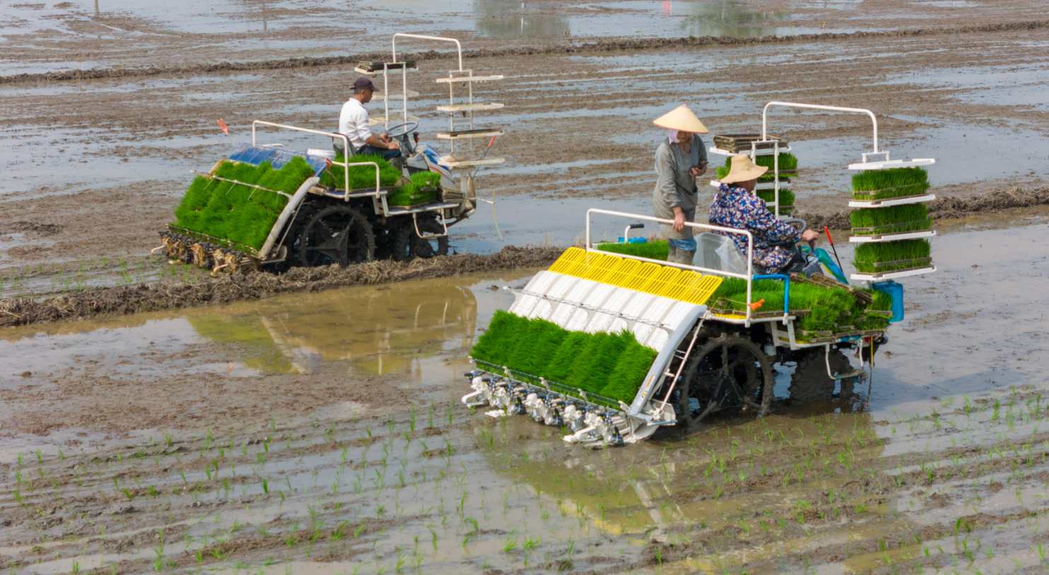 4月15日,位于铜陵市郊区陈瑶湖镇花园村的凌家花园家庭农场里,两台插秧机在田间同时作业。 享誉“糯米之乡”的陈瑶湖镇是省现代农业和农业产业化双示范区,全镇耕地面积5.6万亩,基本上以糯稻种植为主。近年来,当地积极探索粮食稳产增收,通过建设高标准农田,推动农业机械化发展,以农业新技术的推广应用,提升新质生产力,实现机械强农,推动农业增效、农民增收,助力乡村振兴。  陈磊 摄