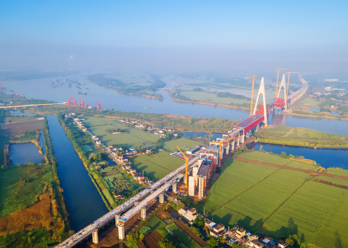 4月18日,巢马铁路马鞍山公铁两用长江大桥副汊航道桥主塔建设现场繁忙有序。巢马城际铁路是安徽通往上海等长三角城市的高铁新通道,建成后将成为合肥“一小时通勤圈”的重要组成部分,对于进一步完善区域高速铁路网布局,提升通道运输能力,加快推动皖江城市带发展具有重要意义。据悉,巢马城际铁路总投资约256亿元。截至目前,巢马城际铁路已完成投资132.73亿元,完成总投资的52%。张明伟 摄