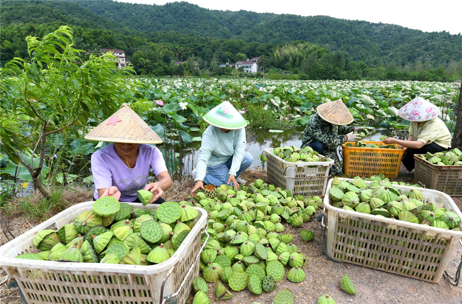7月9日,在安庆市宜秀区杨桥镇鲍冲湖村太空莲种植基地里,村民们忙着采摘莲蓬供应市场。据悉,太空莲基地是鲍冲湖村盘活闲置自然资源和探索观光农业结合的一次成功实践。 本报通讯员 黄有安 鲁大雅 摄