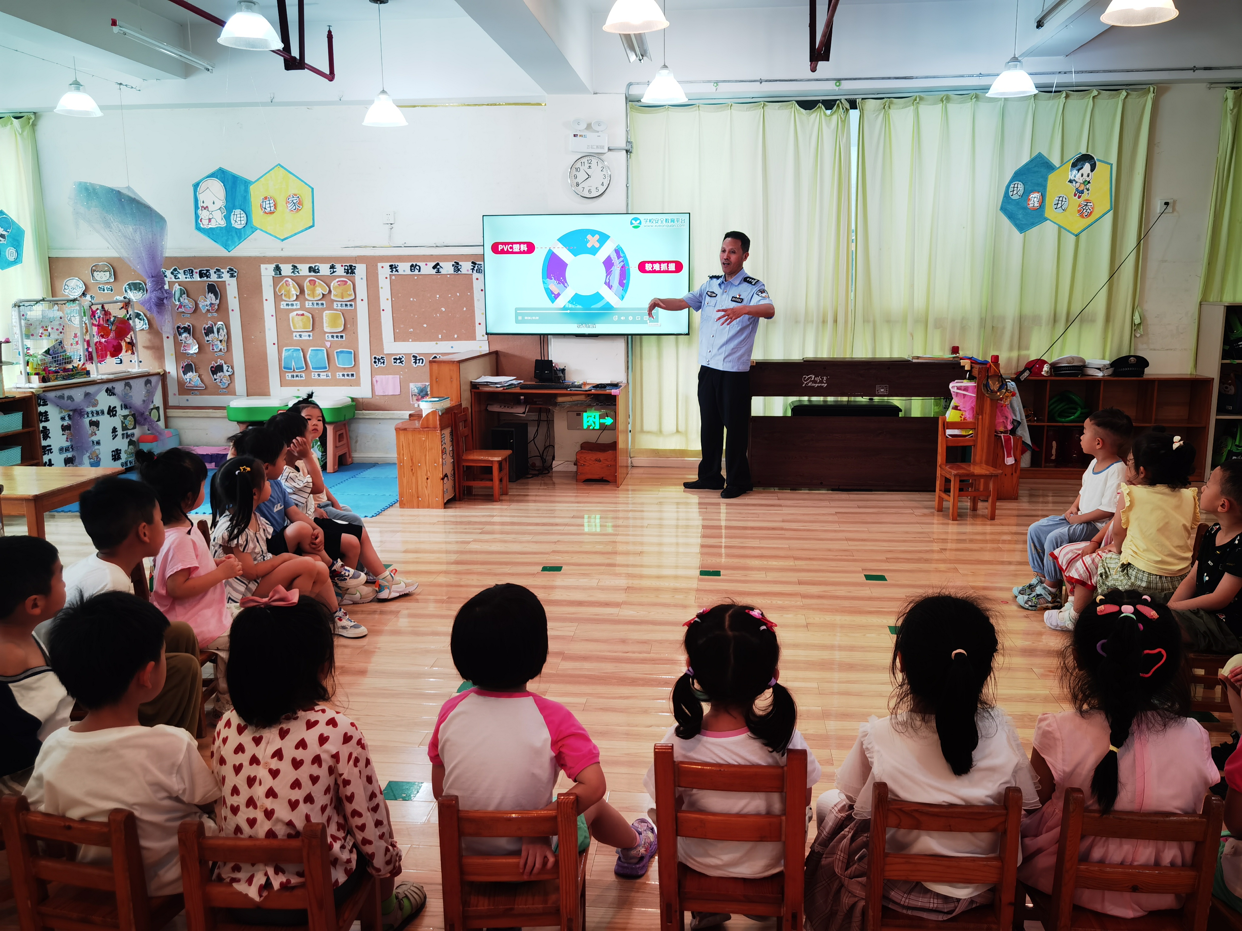 为进一步做好校园暑期安全教育工作,7月17日,合肥市公安局滨湖派出所来到辖区幼儿园,开展安全防范警示教育进校园宣传活动。