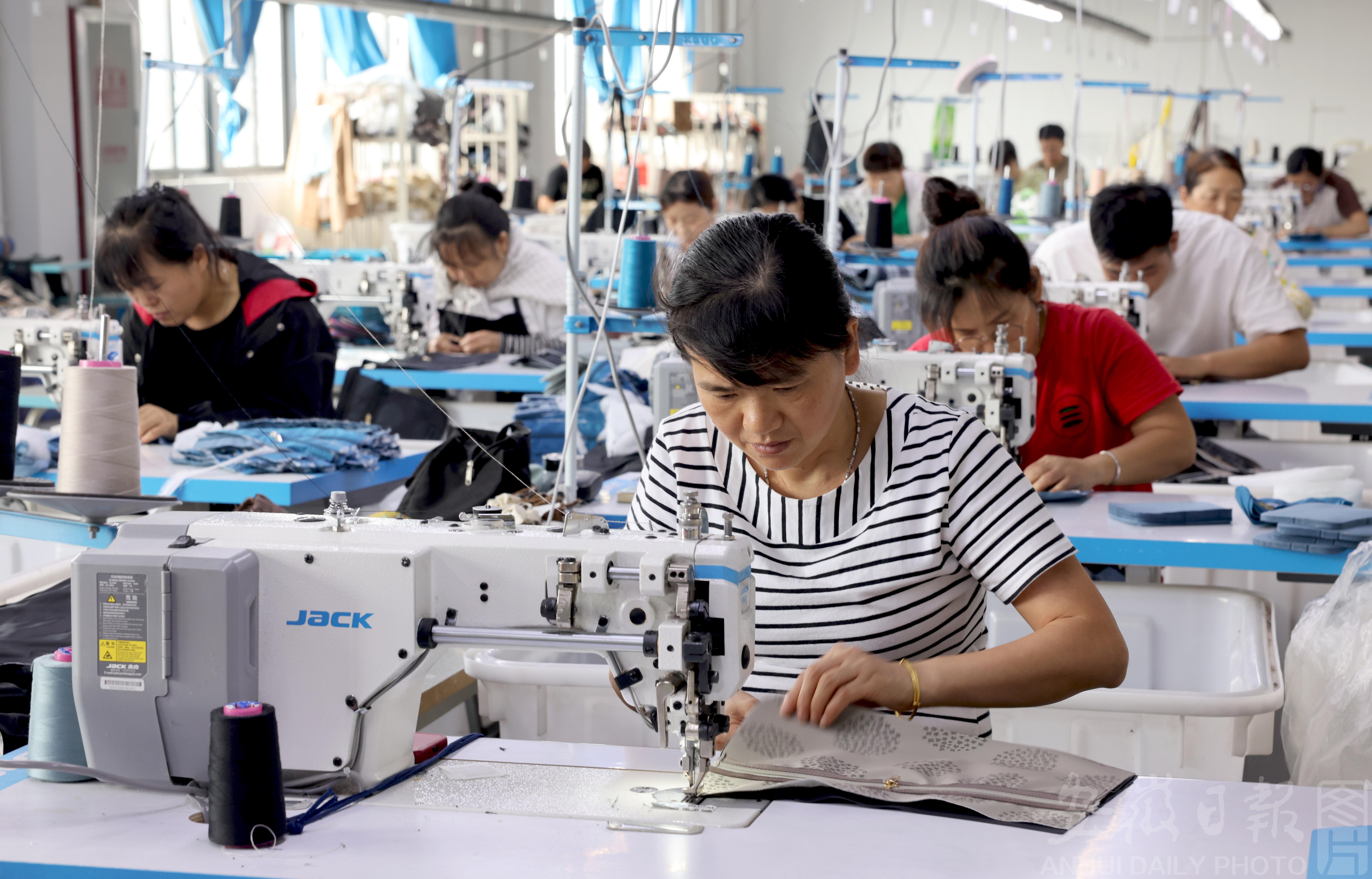 7月28日,在铜陵义安经济开发区的一家箱包生产企业,工人在赶制一批出口到日本市场的箱包。