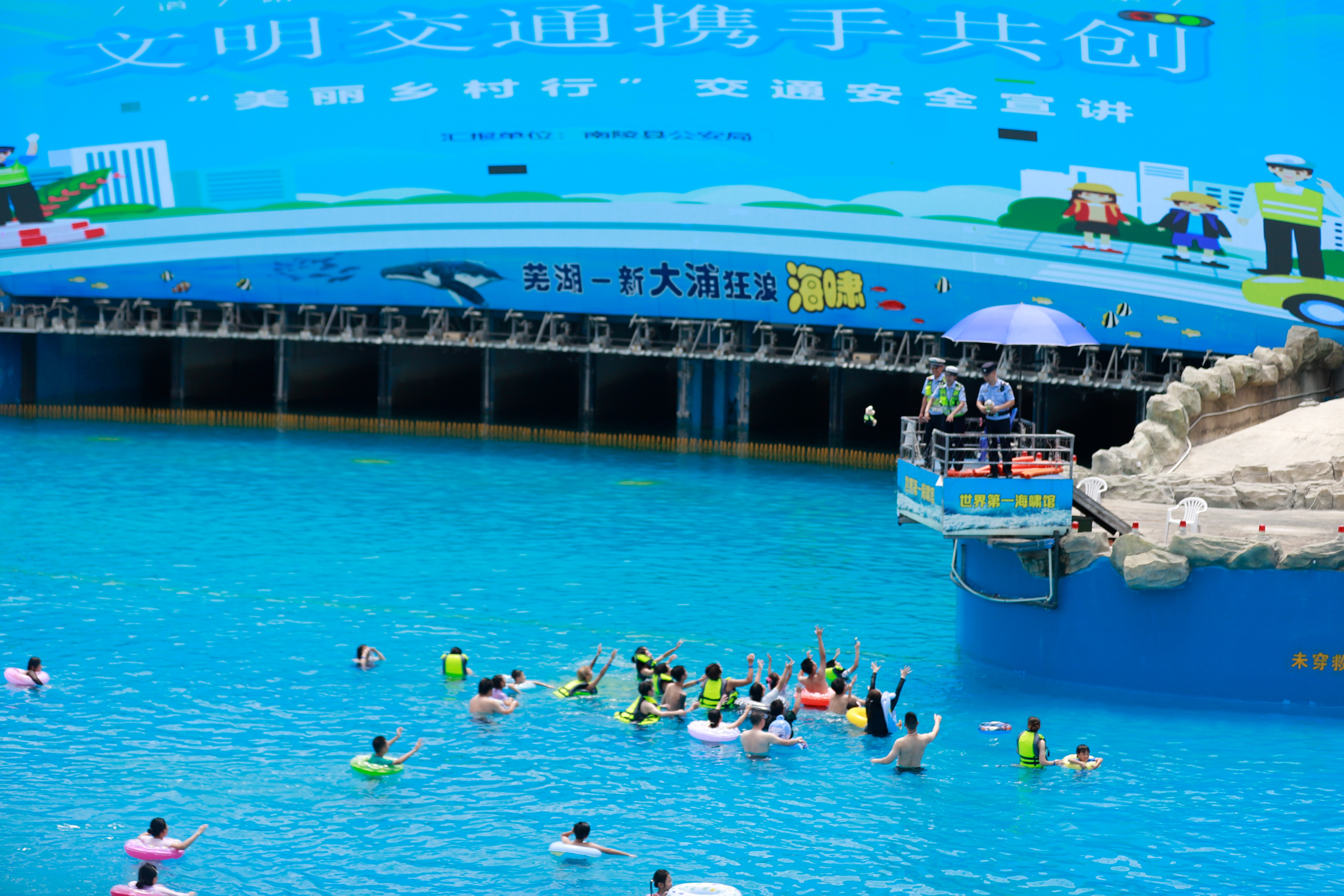 大浦海啸馆作为以水上项目为特色的旅游景点,是游客消暑纳凉的热门选择,但也潜藏着溺水风险。活动中,民警通过现场讲解、发放宣传手册、设置警示展板等方式,向游客们重点讲解了水上活动的安全须知、溺水时的自救与互救知识。同时,民警还深入浅出地介绍了电信诈骗的典型案例,重点普及了防范电信诈骗“三不一多”原则,并结合景区周边的道路交通实际情况,就安全出行、文明停车等事项对游客和景区驾驶员进行了温馨提示。