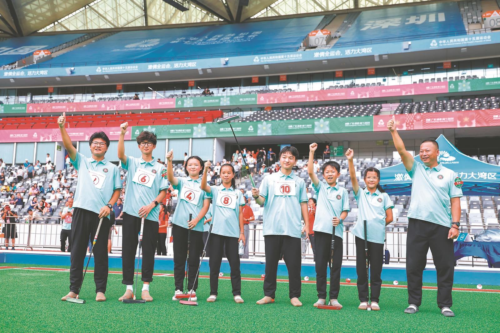 门球运动成为第十五届全运会比赛项目,极大地激发了门球爱好者的热情,更为门球运动带来广阔的发展空间和全新的发展机遇。我省积极选拔优秀运动员参赛,这些运动员不仅身经百战,而且成绩突出,在近5年的省级和全国比赛中均取得了优异战绩。例如,参加此次混合五人制C组比赛的刘奥运、汪波、朱浩曾获得2025年全国青少年门球赛甲组冠军。