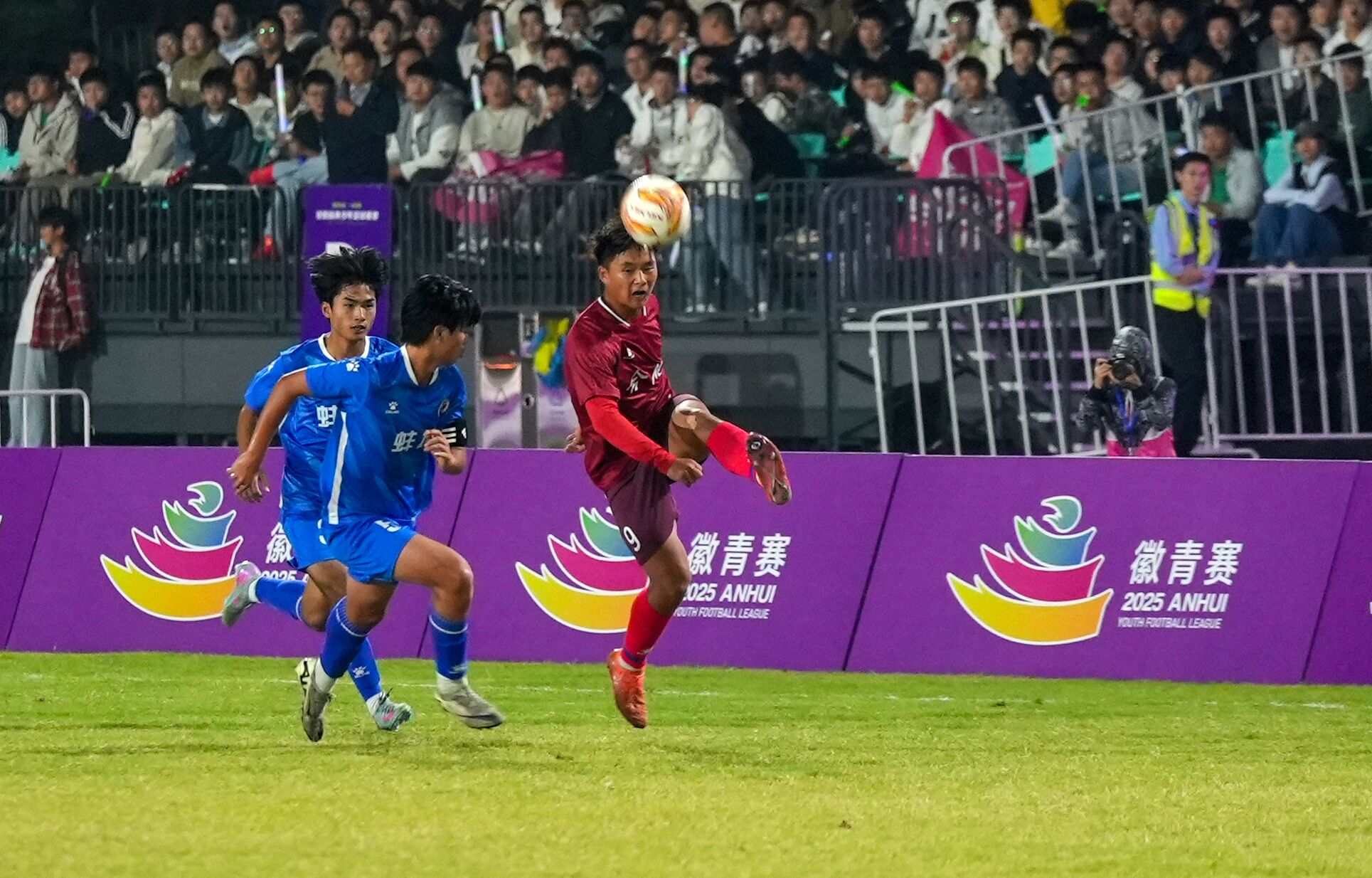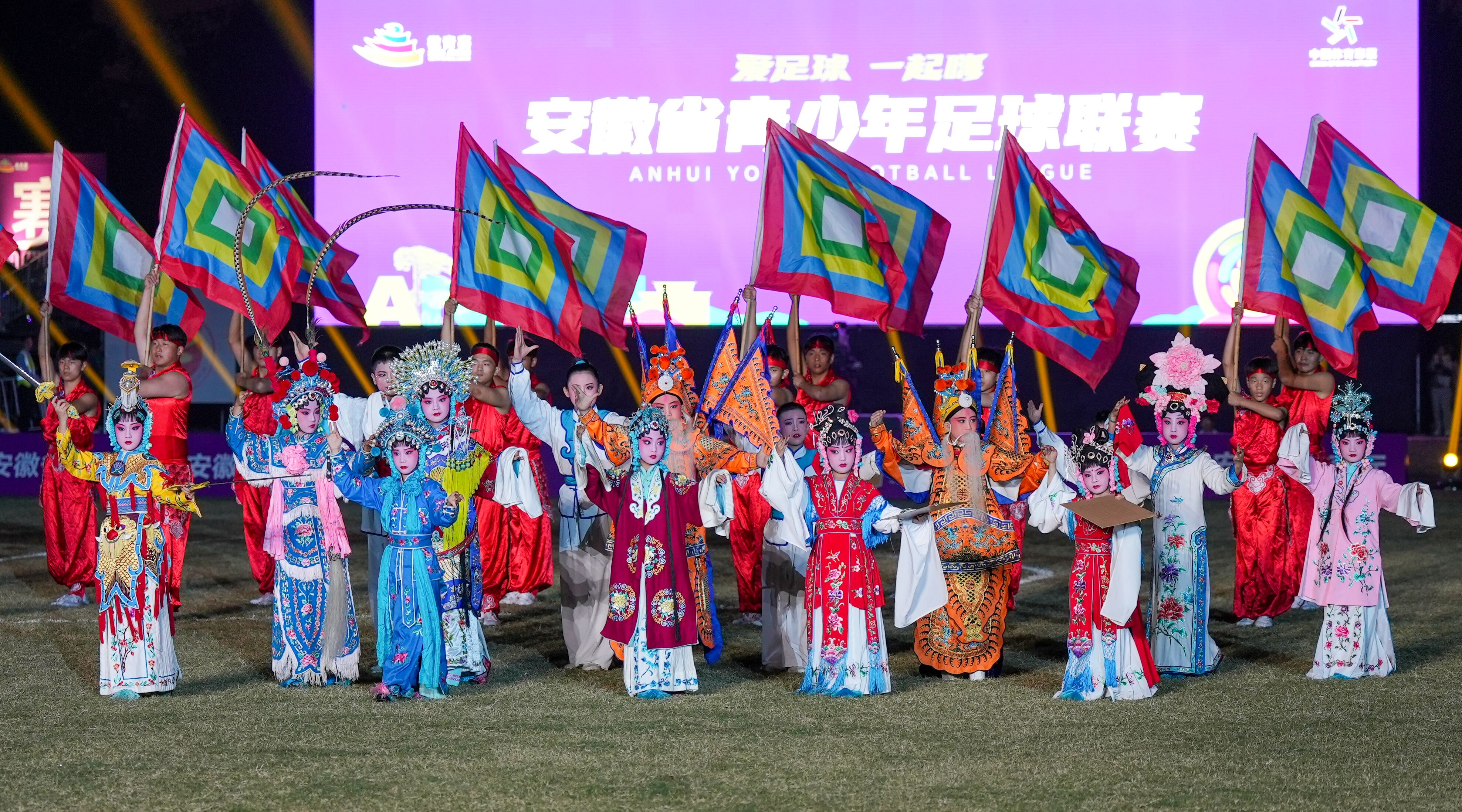 开幕现场亮点纷呈。中场休息时,著名球星、安徽籍国脚韦世豪带领现场观众齐呼“徽青赛,青春上场!”的口号。