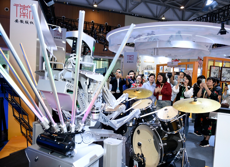 机器人鼓手敲击未来节拍;“神笔马良”挥洒创意画卷;AI技术守护版权创新成果……10月16日至18日,在第十届中国国际版权博览会安徽展区,一系列硬核科技与创新应用,生动演绎了数字时代版权的创造、运用与保护全链条,勾勒出一幅“皖”美数字版权新图景。
