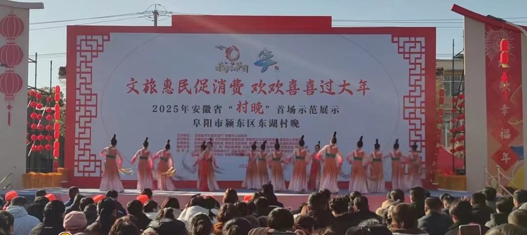 本网讯 皖美乡村情,欢歌幸福年。1月15日,2025年安徽省“村晚”首场示范展示在阜阳市颍东区新乌江镇东湖居委会文化广场举行。本次活动是全省“文旅惠民促消费 欢欢喜喜过大年”2025 春节主题文化和旅游重点活动之一,以“惠民·乐民”为宗旨,丰富优质文化和旅游产品供给,营造“欢欢喜喜过大年”的浓厚氛围,为村民、游客送上丰盛的年味“大餐”。省文化和旅游厅、阜阳市委、市政府、各市文化和旅游局相关负责人及村民和游客5000余人参加活动。