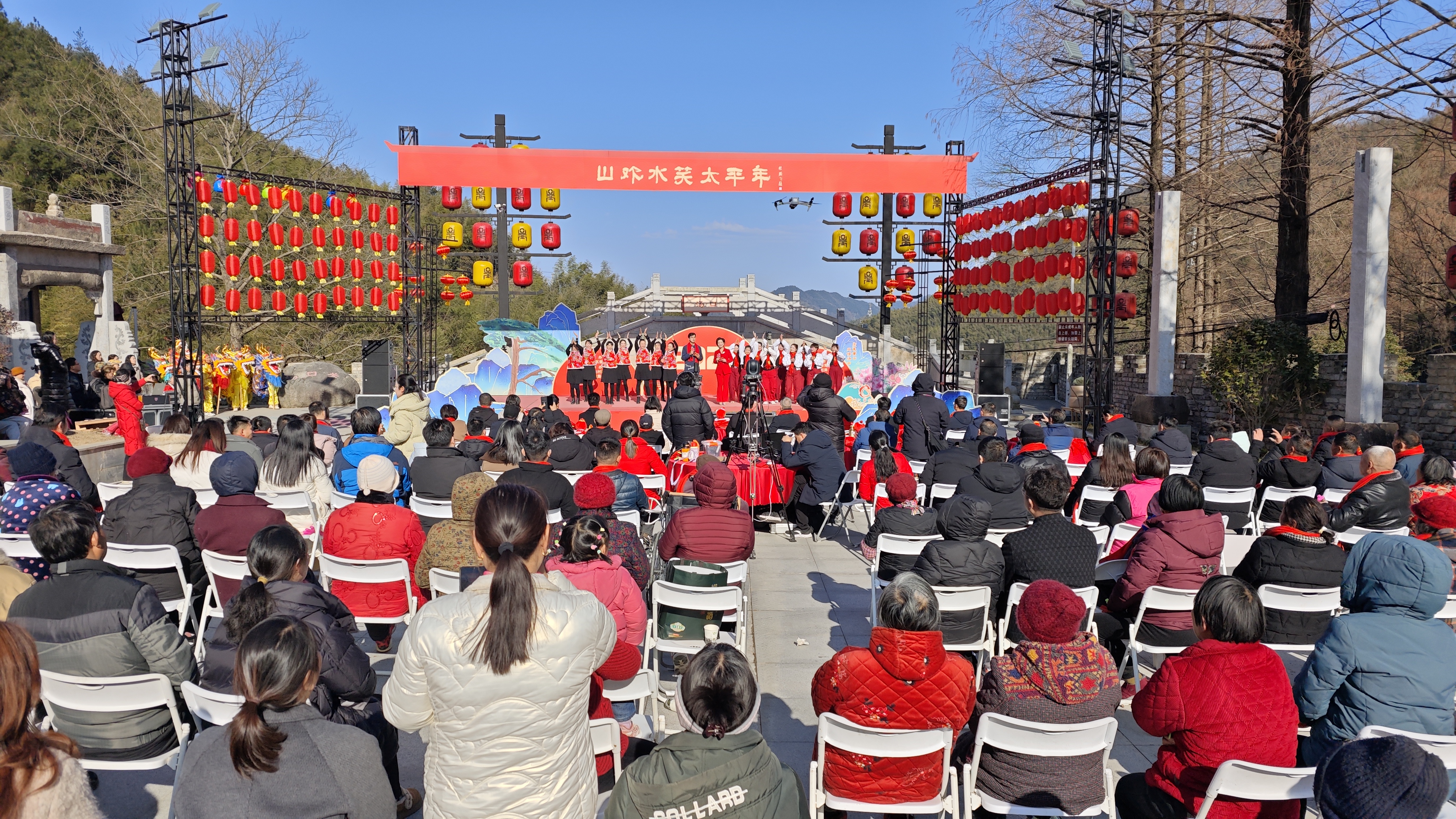1月16日,黄山市黄山区汤口镇汉实国际文化园内,2025乙巳年春节联欢晚会分会场汤口村晚活动如期举行,吸引了众多观众的热情参与。