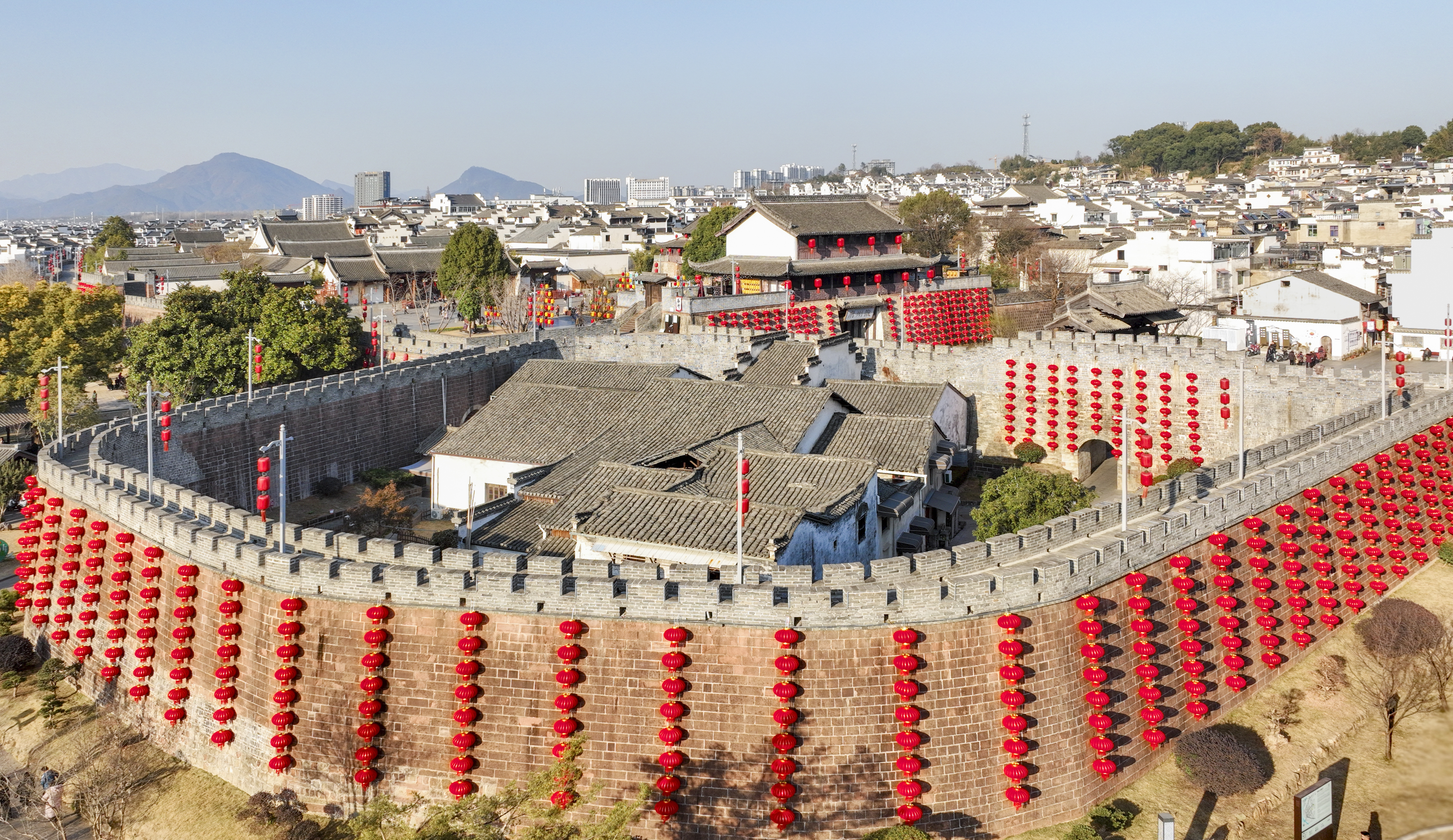 新春佳节将近,全国历史文化名城——徽州古城洋溢着浓厚的节日氛围。城墙边、谯楼上、街巷里,大红灯笼高高挂起,红红火火的新春氛围与古色古香的徽派建筑相得益彰。古老的城墙和谯楼在灯笼的映衬下,愈发显得古朴典雅。随着春节氛围渐浓,越来越多的市民和游客选择走进古城的大街小巷,感受浓郁的“年味”。