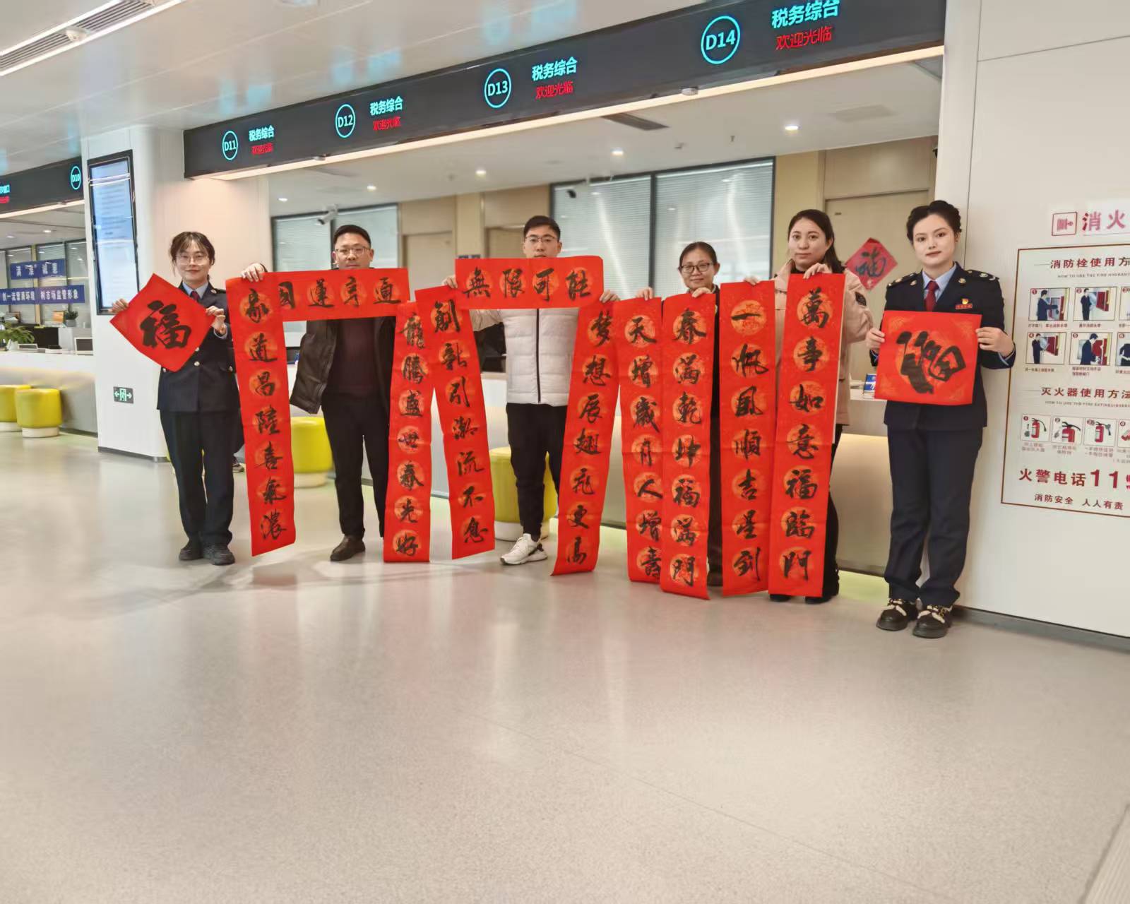 灵蛇启岁,万象更新。在2025乙巳蛇年即将到来之际,淮北高新区税务局在办税服务大厅开展“迎新年、写春联、送祝福”活动,将新春祝福送到前来办税的纳税人缴费人手中。
