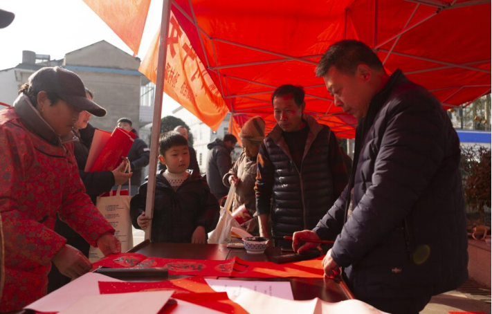 本网讯 “金蛇献瑞三才睦;禹甸迎春百业昌”,“龙辞旧岁丰功在;蛇舞新春好运来”。1月22日,旌德县孙村镇新时代文明实践所联合文联、妇联、团委、公安派出所、综治中心等部门,并邀请县文联的书法大师们,开展了“‘楹’春共赏,联庆万家”活动,为即将到来的新春佳节增添了浓郁的喜庆氛围。活动一开始就吸引了众多百姓热情参与,现场人头攒动,热闹非凡。