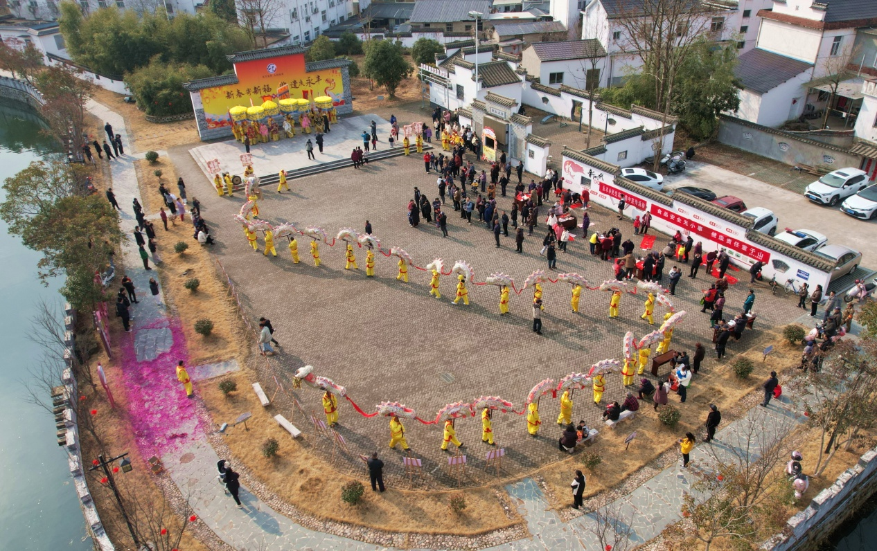 五福送喜,龙灯添彩, 1月23日,在新春佳节到来之际,黄山市黄山区永丰乡里仁广场热闹非凡,永丰乡举办“新春寄新福,非遗庆永丰”主题活动,“五福会”“永丰龙灯会”两项非遗齐聚一堂,为当地居民送上了一份充满传统文化韵味的新年贺礼。