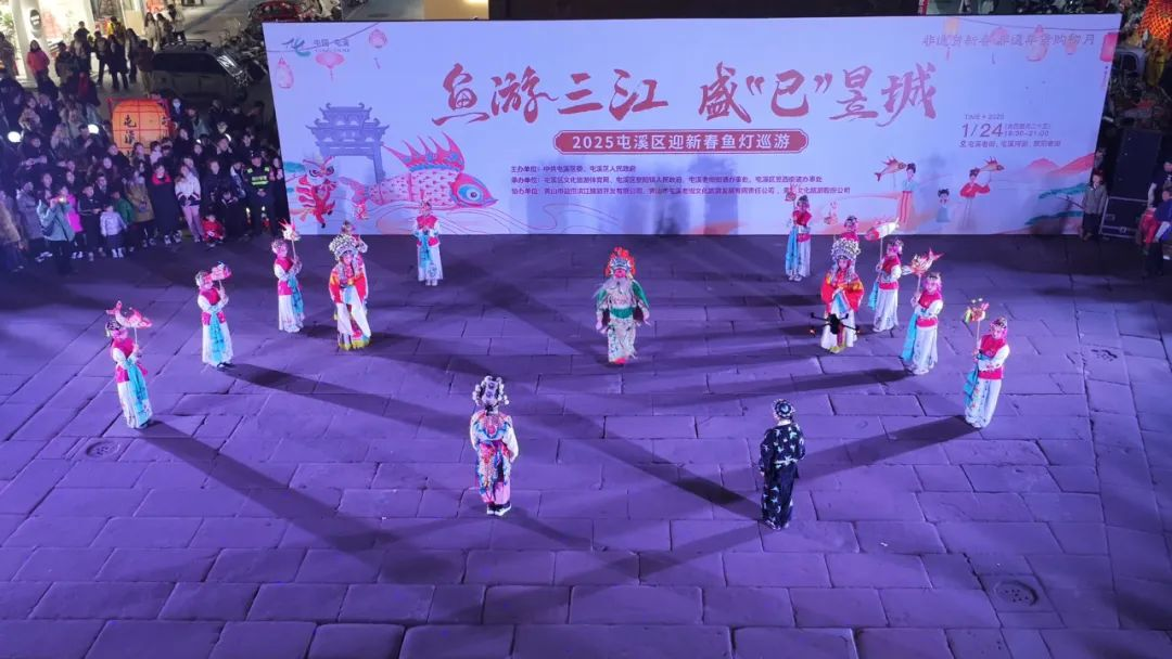 非遗民俗巡游无疑是此次活动的重头戏。巡游队伍从屯溪老街出发,经屯溪河街,转场老大桥,再到黎阳老街,将古色古香的街巷装点得如梦如幻。大鱼龙灯、汉服鱼灯、娃娃鱼灯等创新鱼灯表演形式与屯溪布龙、屯溪舞狮、黎阳吊狮等传统民俗表演交相辉映,带来了一场视觉与心灵的双重盛宴,吸引了大量群众驻足观看。