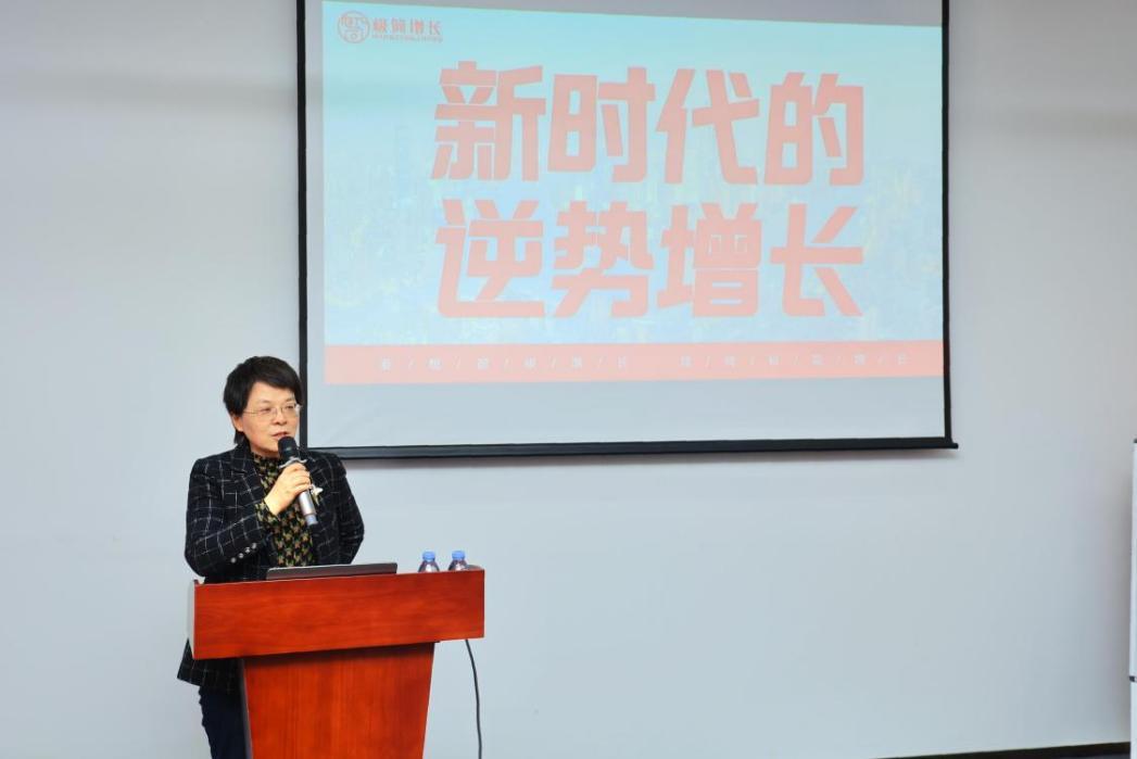上海极简增长管理咨询有限公司创始人蔡佩辰首先围绕《新时代下的产业整合》展开授课。她指出,当前企业面临的最大挑战是如何在快速变化的市场环境中实现稳健发展。产业整合不仅是企业自身发展的需要,更是国家经济结构调整和社会进步的必然要求。她在授课期间还分享了极简增长与友乐邦、八维七度等公司的具体合作案例,展示了如何通过产业整合实现企业的快速增长和市场扩展。