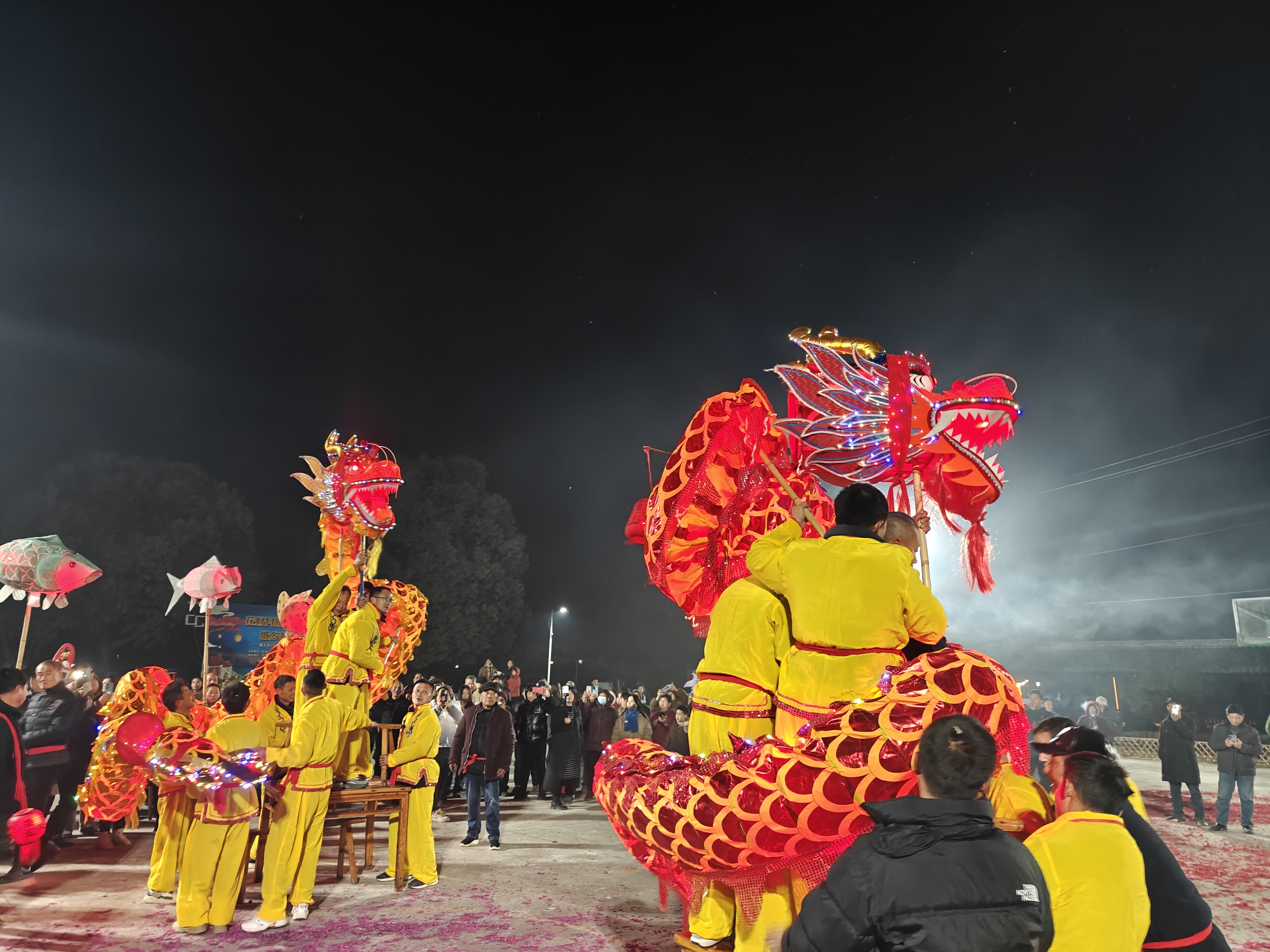1月30日晚,黄山市黄山区新丰乡村民敲起锣鼓,舞起眉山龙灯,用传统的方式祈盼蛇年风调雨顺、五谷丰登。