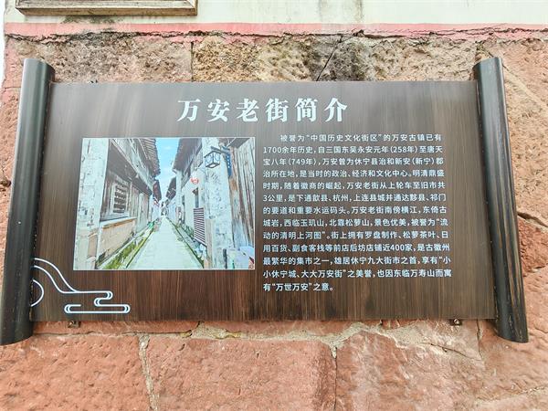 为深入推进休宁县万安老街文化资源的保护与传承,增进游客和市民对老街深厚文化底蕴的了解,近期,万安镇组织3名徽学研究人员,对老街蕴含的状元文化、红色文化、古建文化等进行了系统且深入的挖掘整理,并精心制作了 15 块图文并茂的仿古展板。