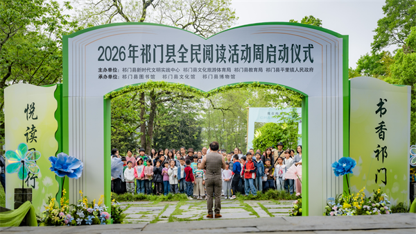 四月的祁门,茶香漫野,书韵流芳。4月18日上午,由祁门县新时代文明实践中心、祁门县文化旅游体育局、祁门县教育局、祁门县平里镇人民政府主办,祁门县图书馆、祁门县文化馆、祁门县博物馆承办,安徽省祁门县蛇伤研究所、祁门县新华书店协办的2026年“书香祁门阅读季”暨“全民阅读活动周”系列活动启动仪式在红茶故乡平里镇的梅南公园拉开序幕。本次活动旨在让阅读走出书房,融入自然,在孩子心中播下热爱阅读的种子。