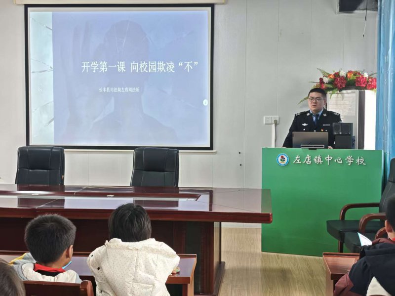 为提升未成年人法治意识,预防校园欺凌行为,3月9日,长丰县左店司法所走进左店中心校,以“拒绝校园欺凌,守护少年的你”为主题开展法治宣讲活动,为全校师生送上一堂生动实用的法律“必修课”。
