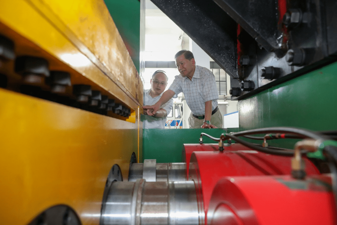 袁亮院士在实验室指导研究生开展动静组合加载冲击动力学研究。