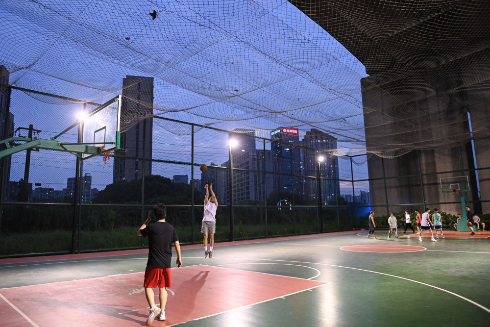 这是市民在钱江世纪城体育公园打篮球(2022年9月20日摄)。新华社记者 黄宗治 摄