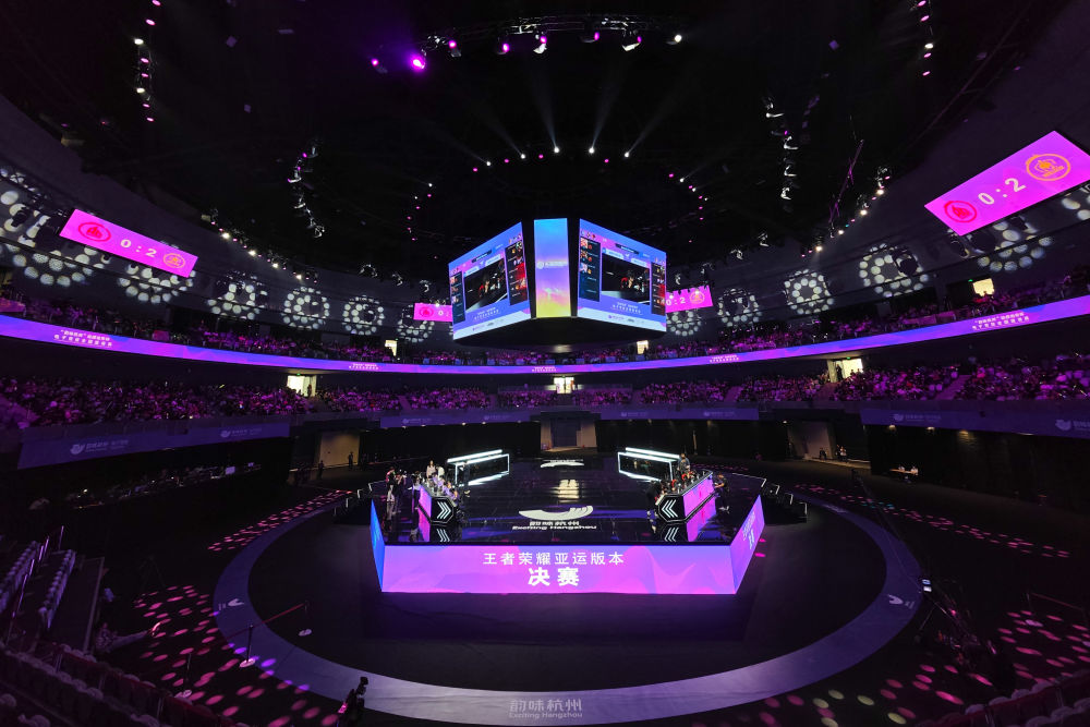 这是在杭州电竞中心拍摄的“韵味杭州”电子竞技全国邀请赛王者荣耀亚运版决赛现场(2023年5月21日摄)。新华社记者 黄宗治 摄