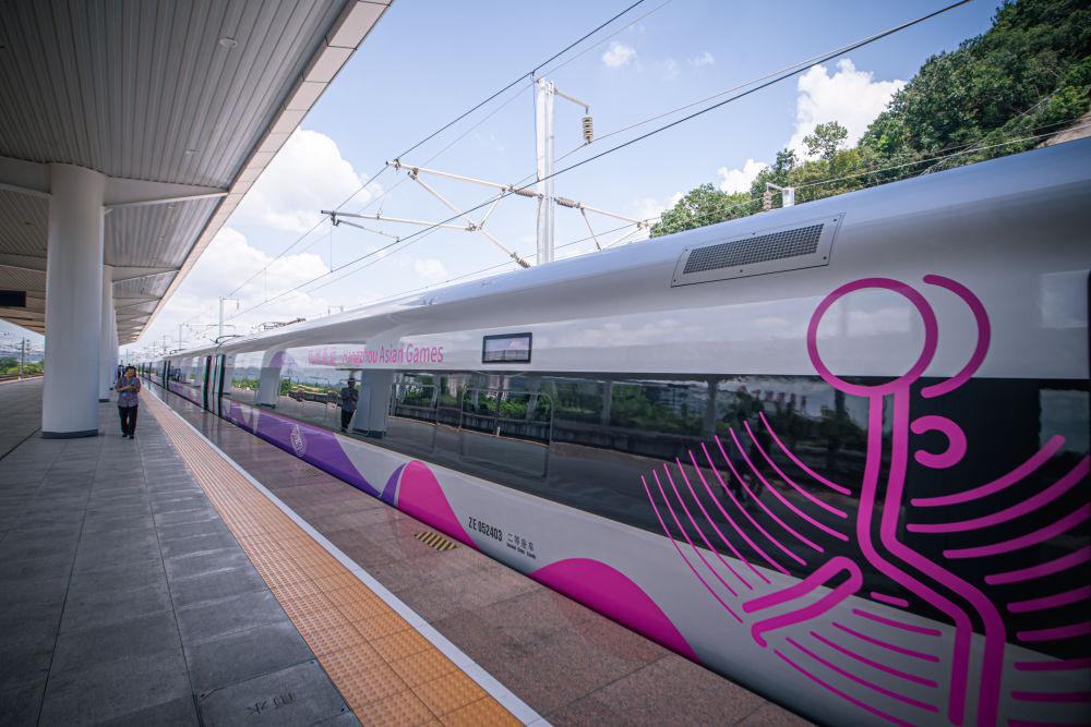 这是亚运智能动车组停靠在德清站站台(2023年8月4日摄)。新华社记者 江汉 摄
