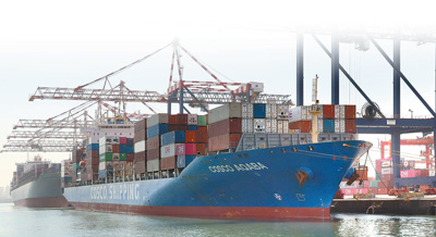 8月19日,满载货物的中远海运集装箱船停靠在南非德班港。