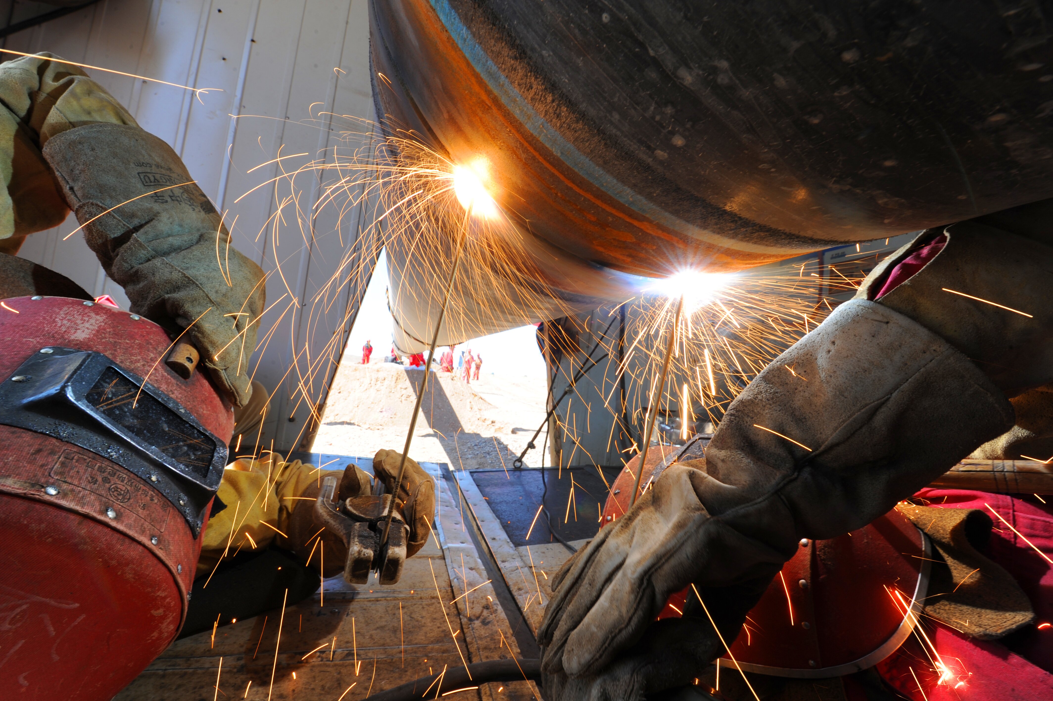 “气龙”在焊花中延伸。(塔里木油田供图)