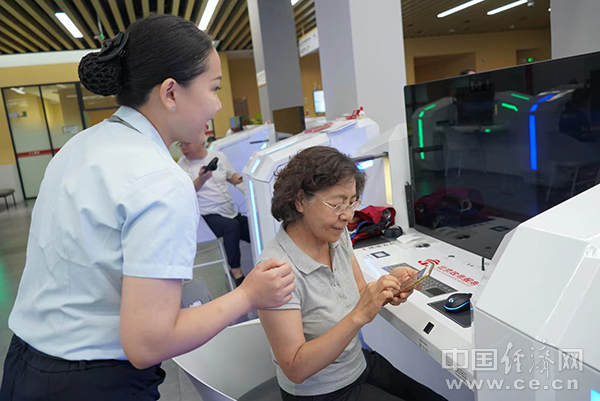 北京城市副中心政务服务中心工作人员帮助居民完成智能终端操作。中国经济网记者 马常艳摄