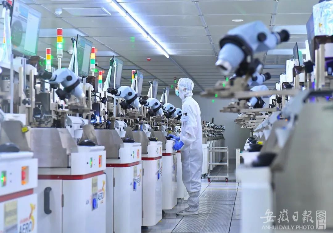 在联想集团合肥产业基地智能制造中心,大量自动化设备被引入,还广泛应用了5G、大数据、云计算等技术,智能制造水平与效率大大提升。