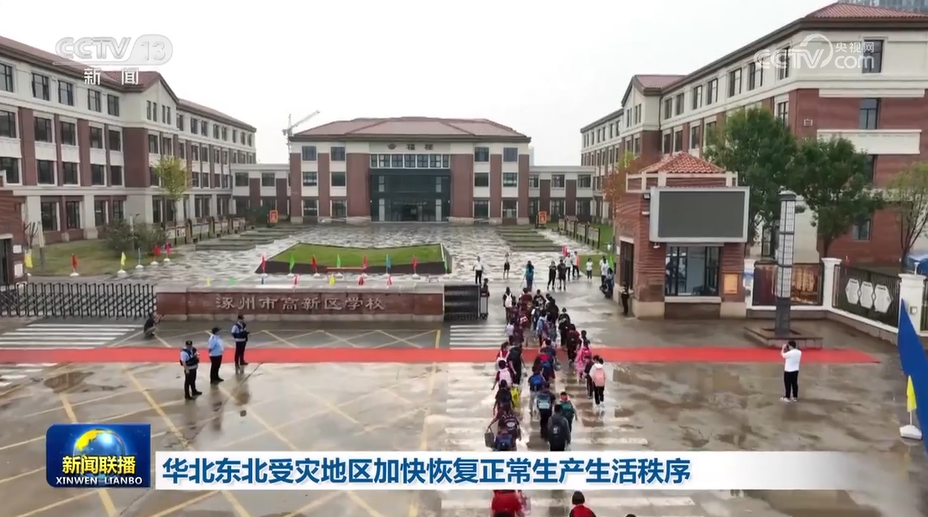 央视网消息(新闻联播):华北、东北受灾地区正常生产生活秩序加快恢复。北京房山区受损的19座城镇污水处理厂、131座农村污水处理站已全面恢复稳定运行,全区实现正常排水。截至目前,河北涿州已基本实现水、电、讯、路正常运转。今(8月31日)明两天,河北涿州294所学校将陆续开学,13万师生如期返校。今天,涿州高铁新城第一中心学校布置一新,开学第一课是向同学们讲述防汛抗洪救灾中的感人事迹。