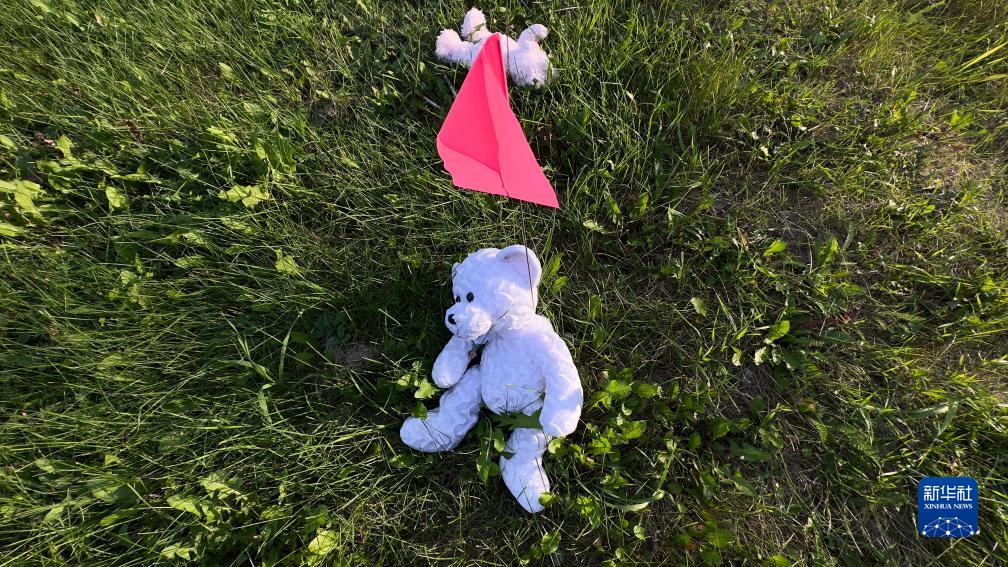 这是8月31日在加拿大萨斯喀彻温省博瓦尔印第安人寄宿学校旧址拍摄的用粉色旗子标出的疑似儿童和婴儿墓地。