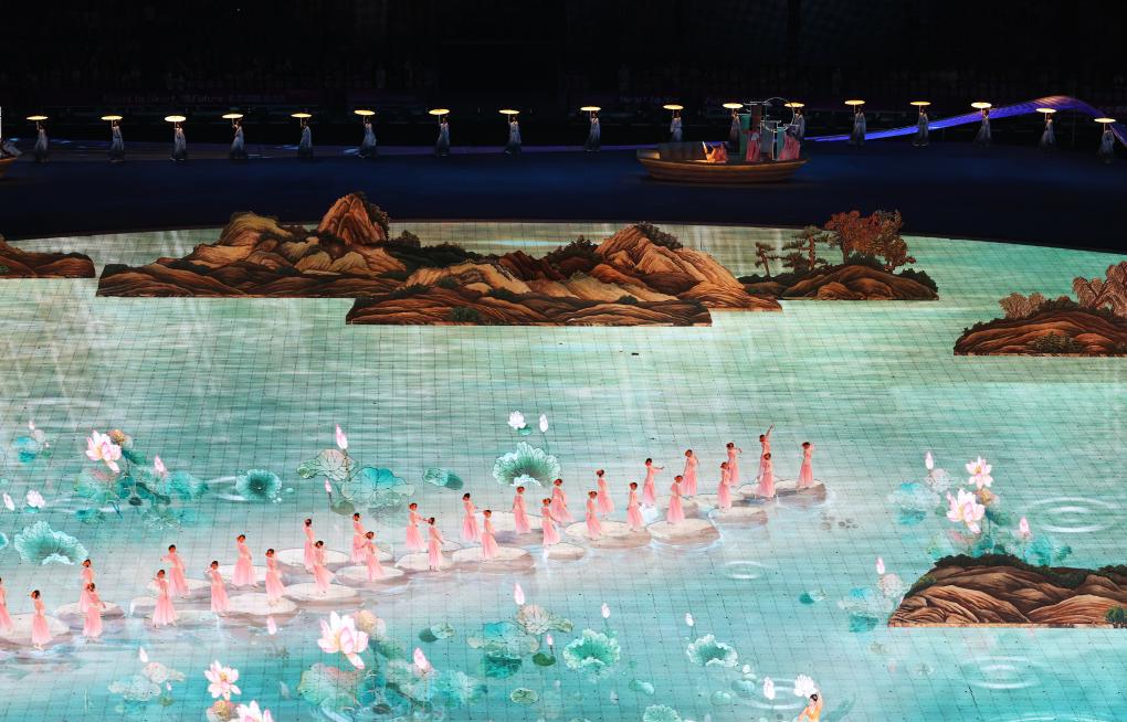 在开幕式文艺演出中,水是贯穿始终的核心元素。导演团队表示,水是生命的源泉,也是人类文明的摇篮。中国文化中有“上善若水,水善利万物而不争”的思想。而杭州更是一个因水而生、因水而兴的城市。