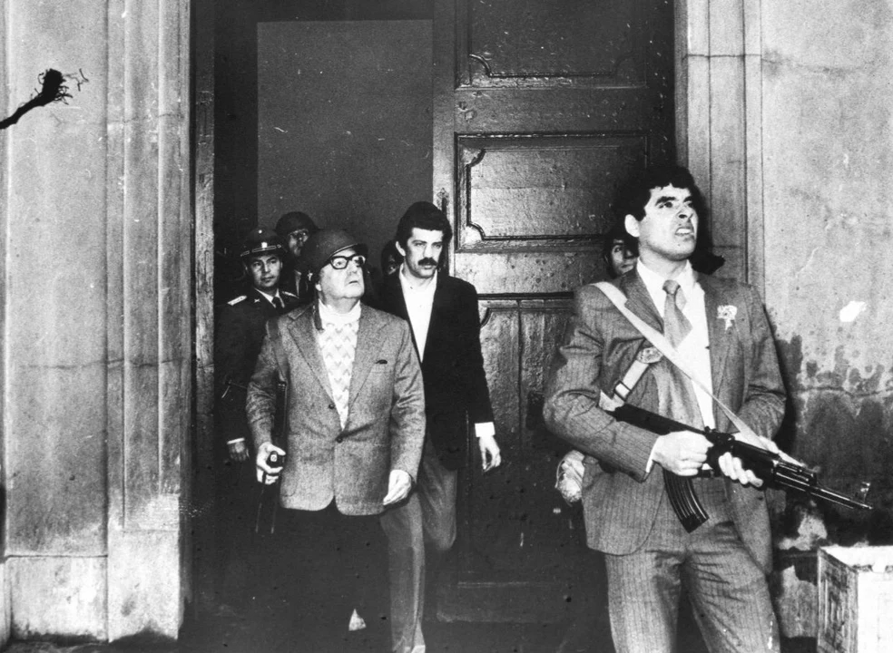 1973年9月11日,智利首都圣地亚哥,被政变军人包围的总统府内,智利左翼总统萨尔瓦多·阿连德发表广播讲话,表达战斗到底的决心。当天晚些时候,总统府被攻占,阿连德殉职。